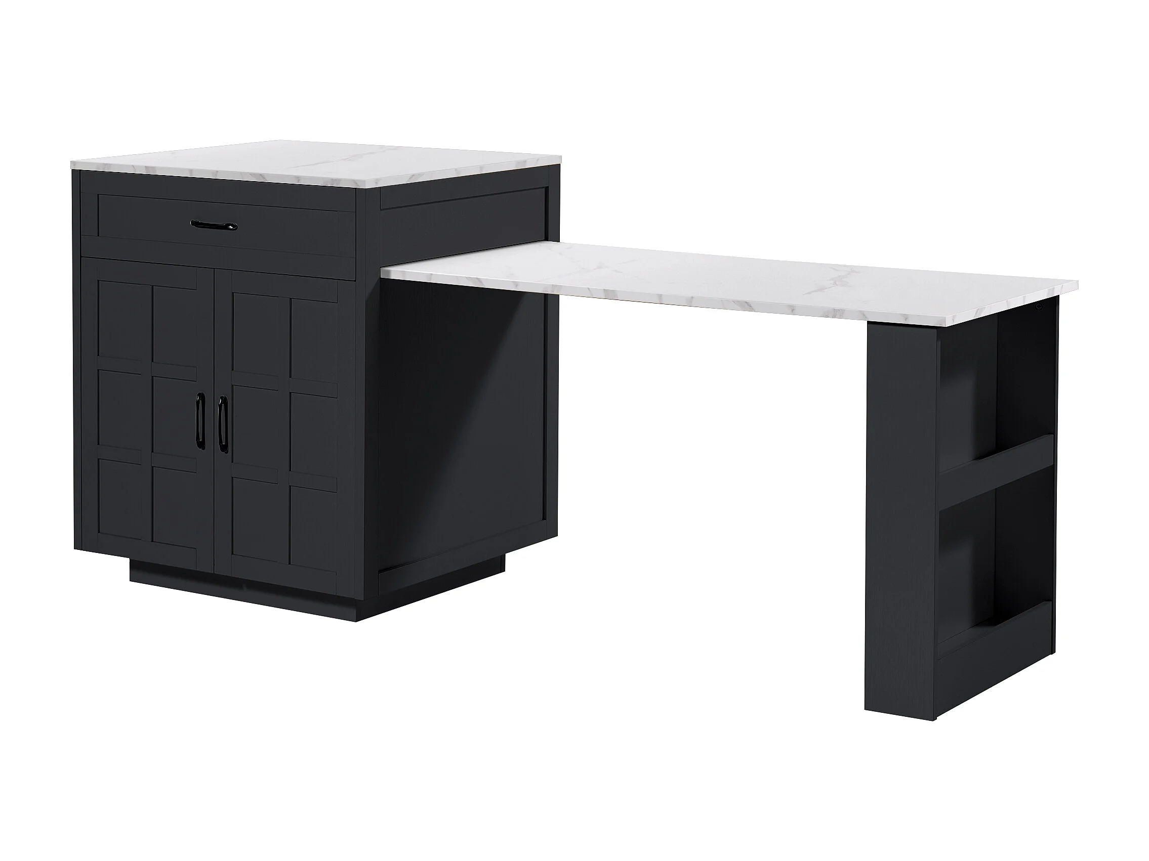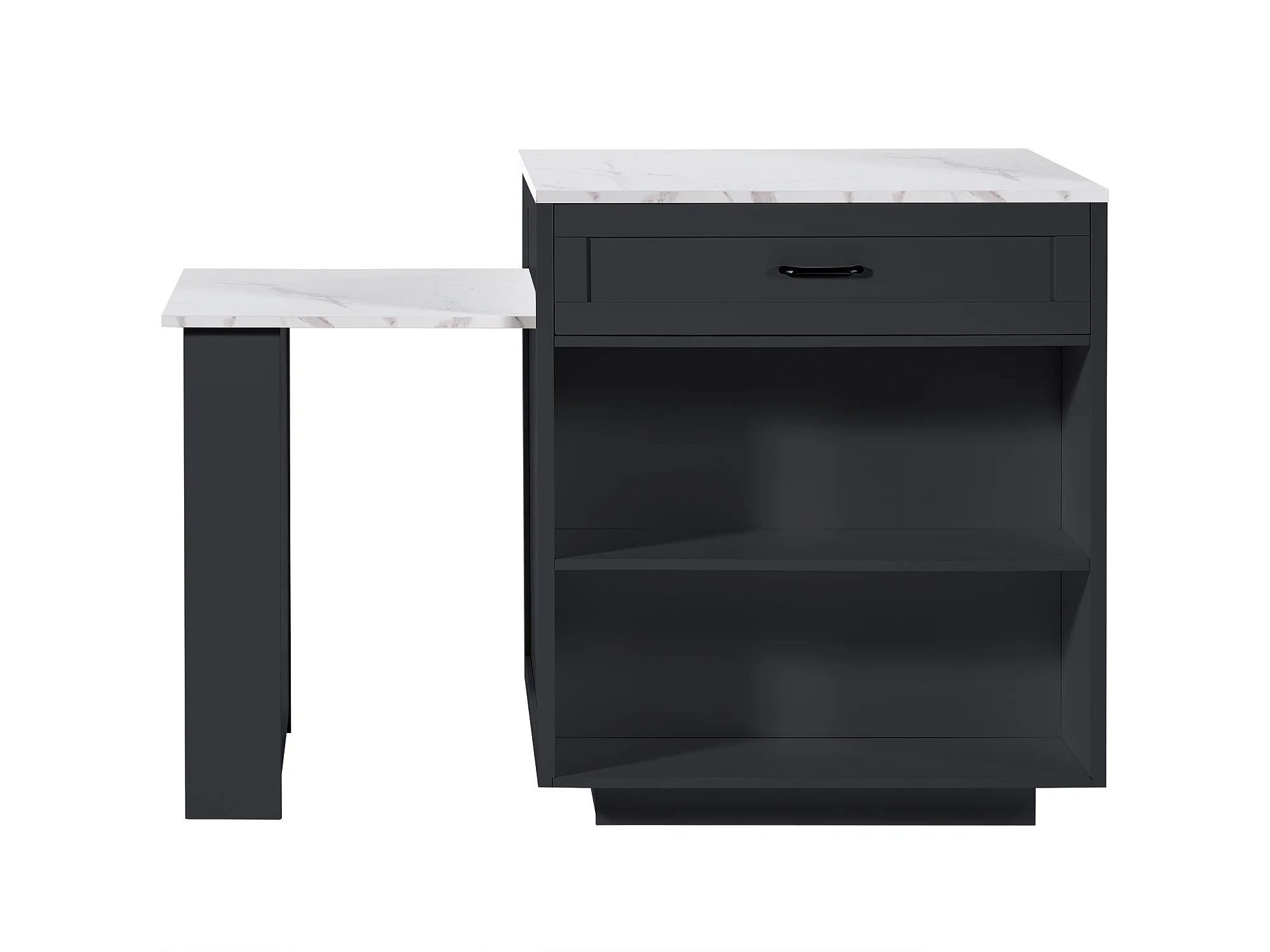 Table de bar 133x70x93.5 cm, extensible à 202 cm, rangement avec tiroir et étagères, MDF noir