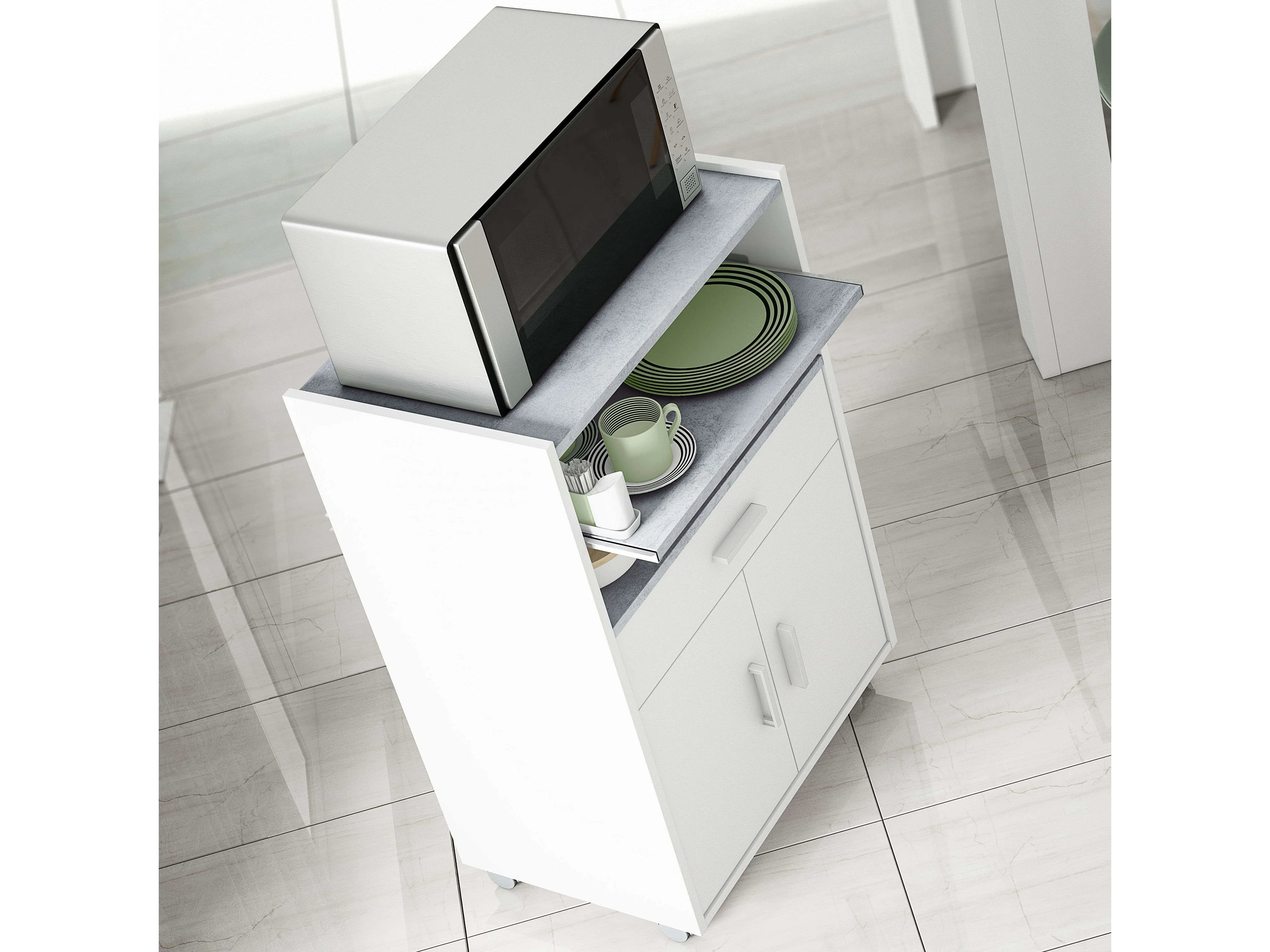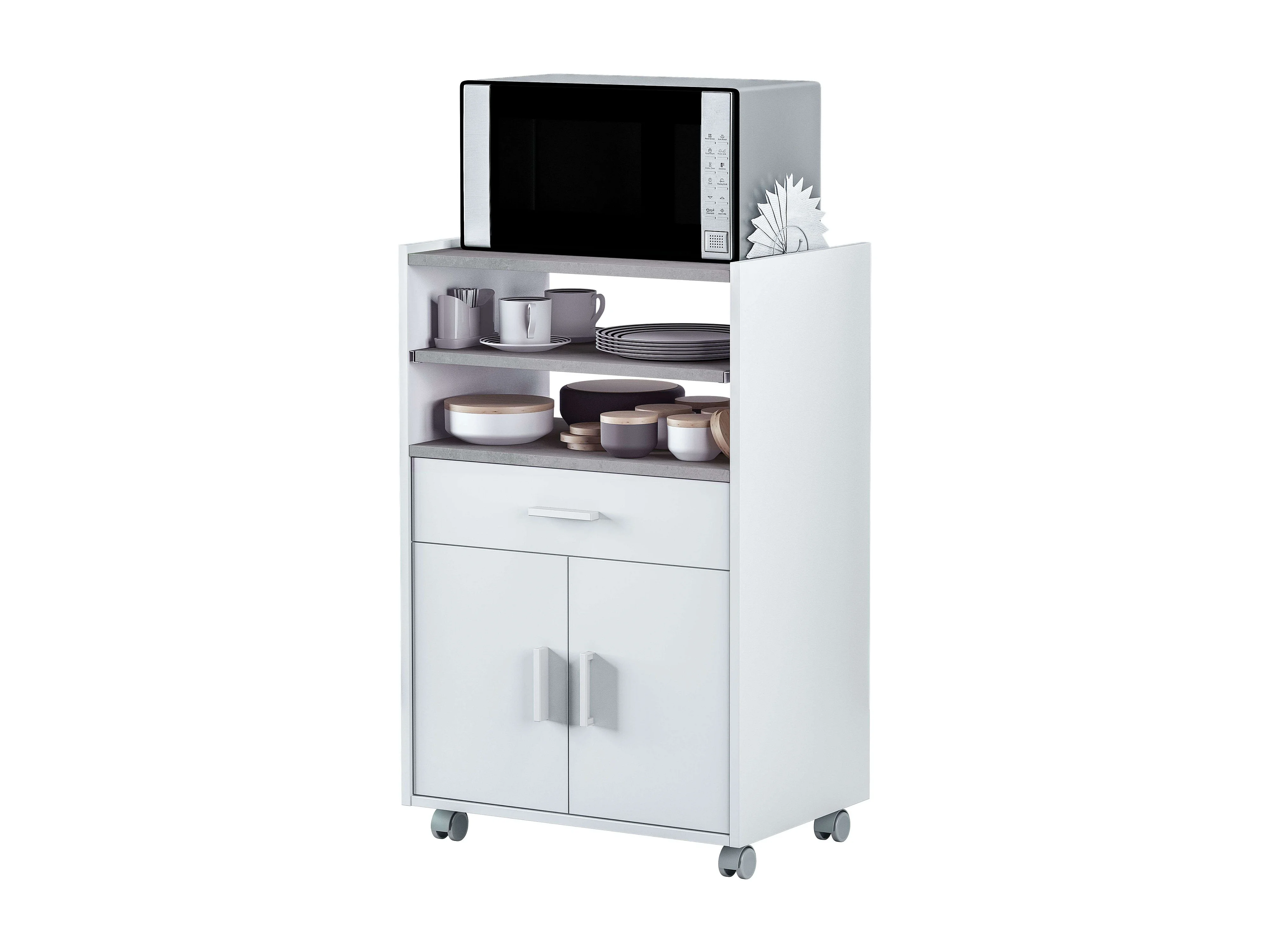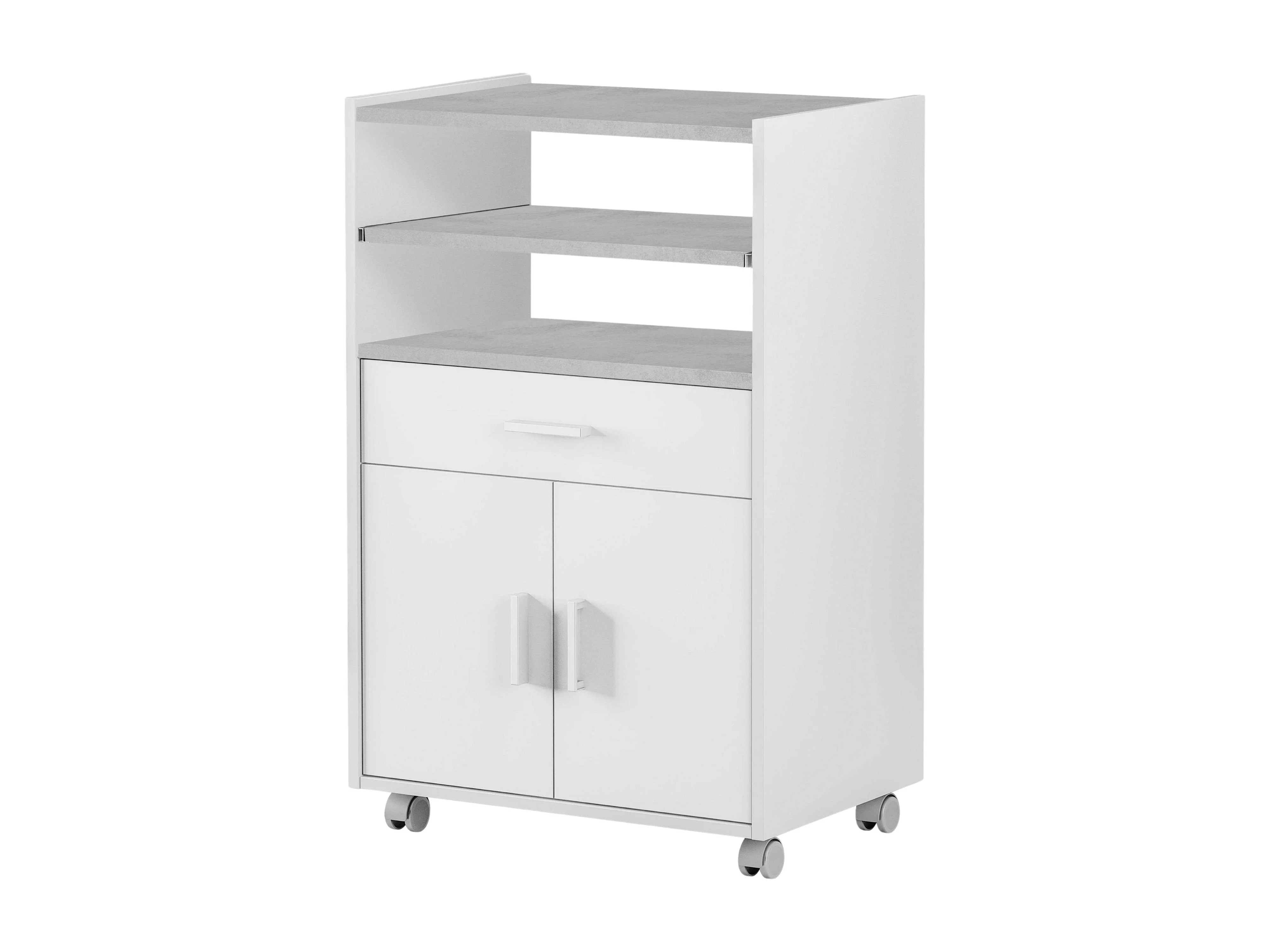 Meuble de cuisine micro-ondes blanc/ciment avec 1 tiroir et 2 portes, 92x59x40 cm