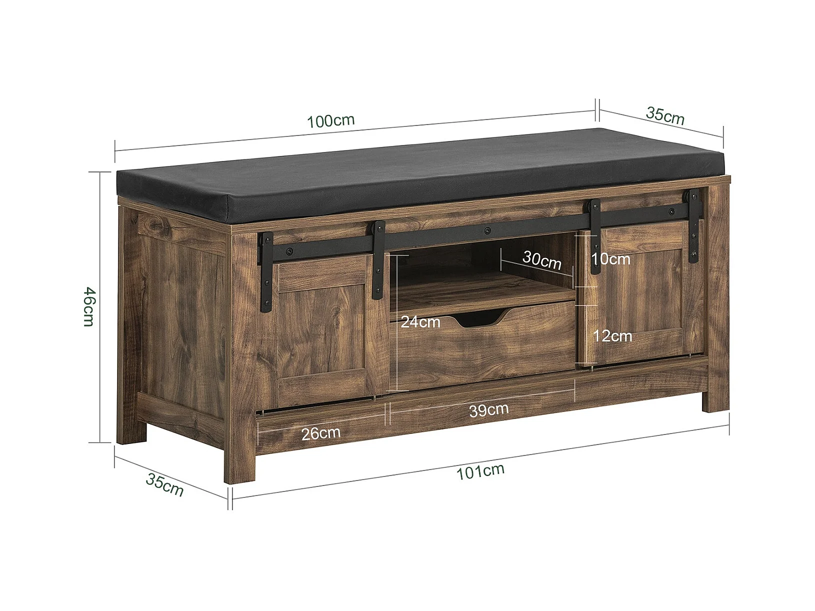 SoBuy FSR175-N Banc de Rangement, Banc à Chaussures, avec 1 Coussin Rembourré, 1 Tiroir et 2 Portes pour Entrée