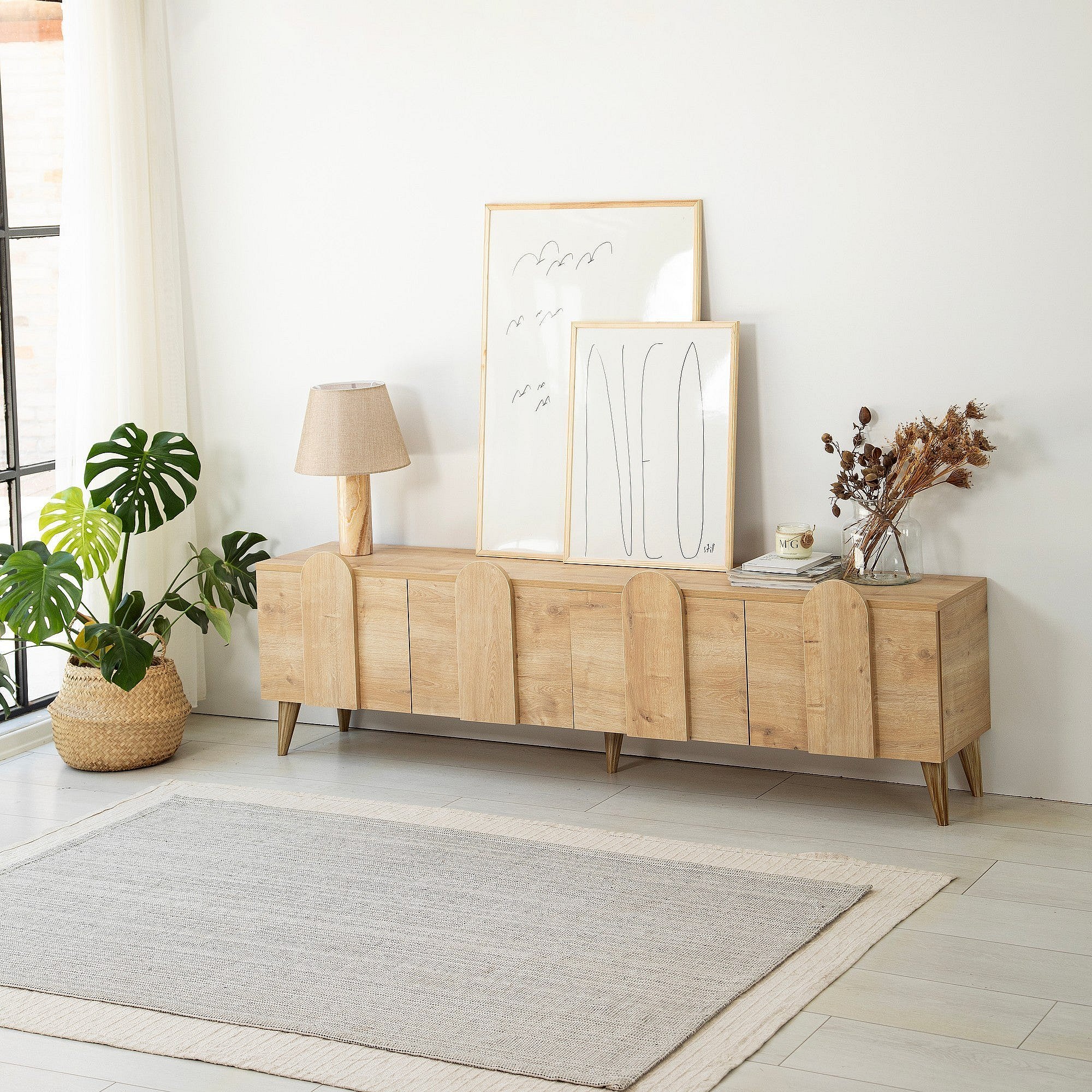 Meuble de rangement en bois 4 portes battantes Robas 180cm-Couleur Marron clair