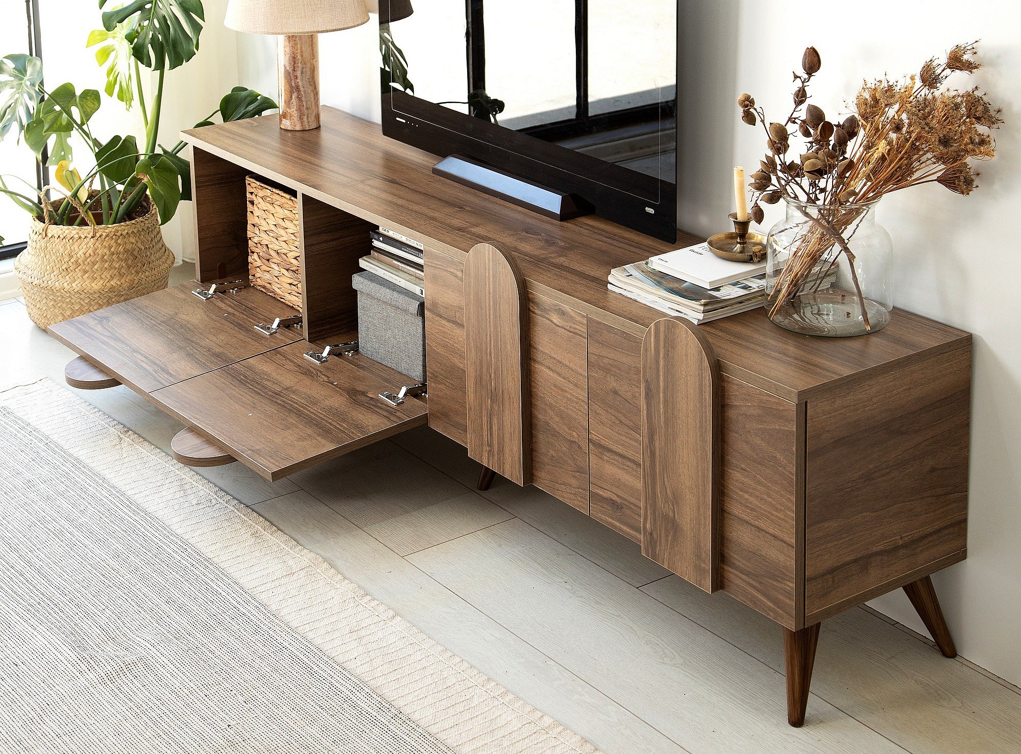 Meuble de rangement en bois 4 portes battantes Robas 180cm-Couleur Marron Foncé