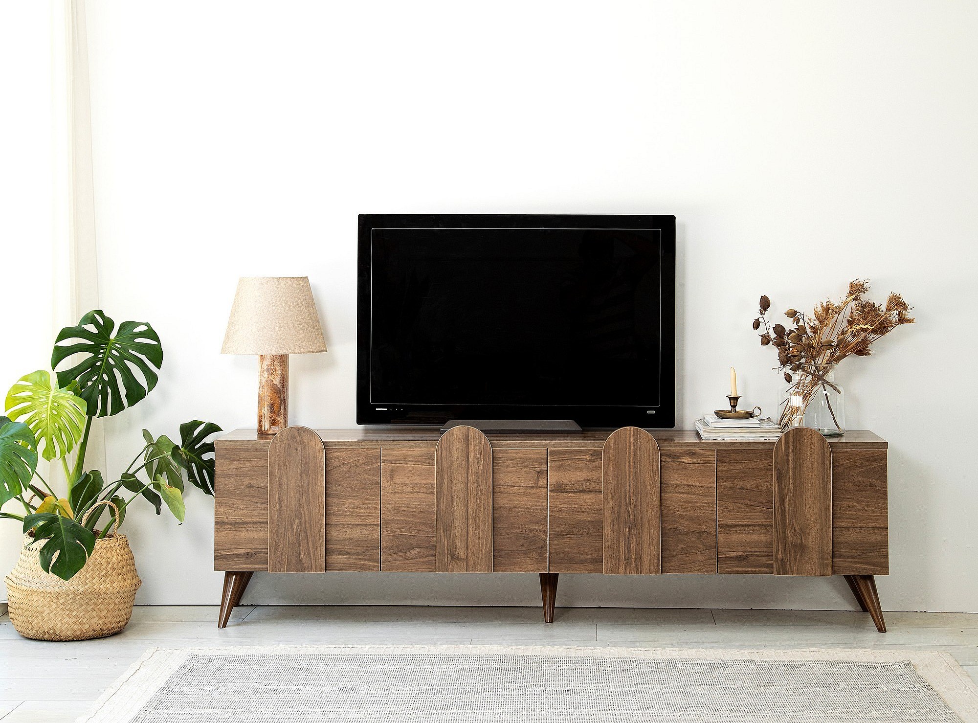 Meuble de rangement en bois 4 portes battantes Robas 180cm-Couleur Marron clair