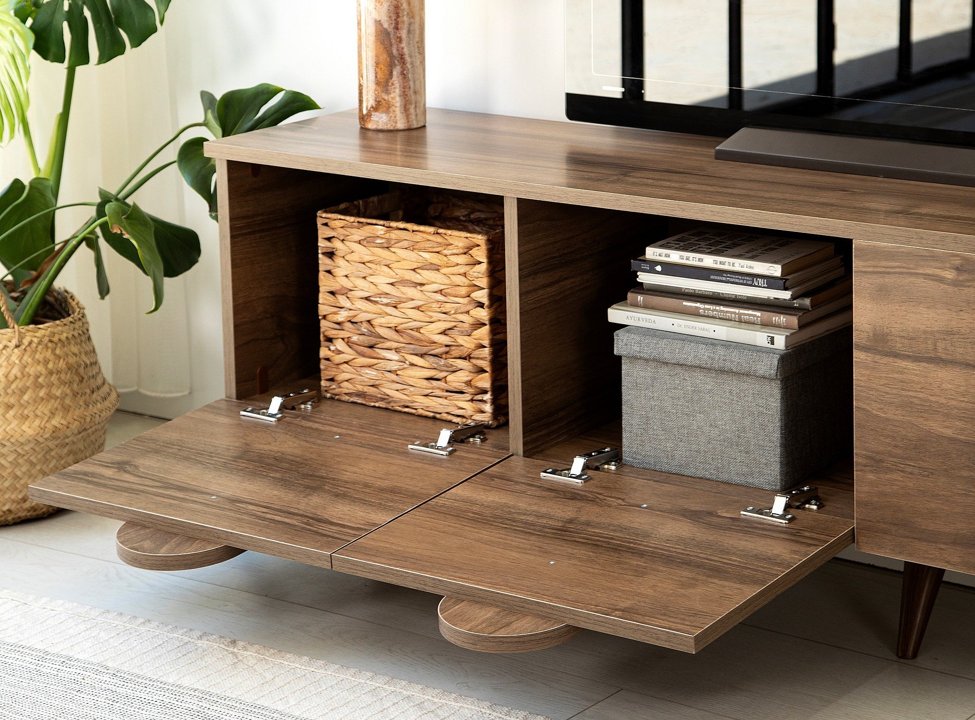Buffet moderne 140x39x90cm - avec 4 portes et 2 tiroirs - Blanc + Marron