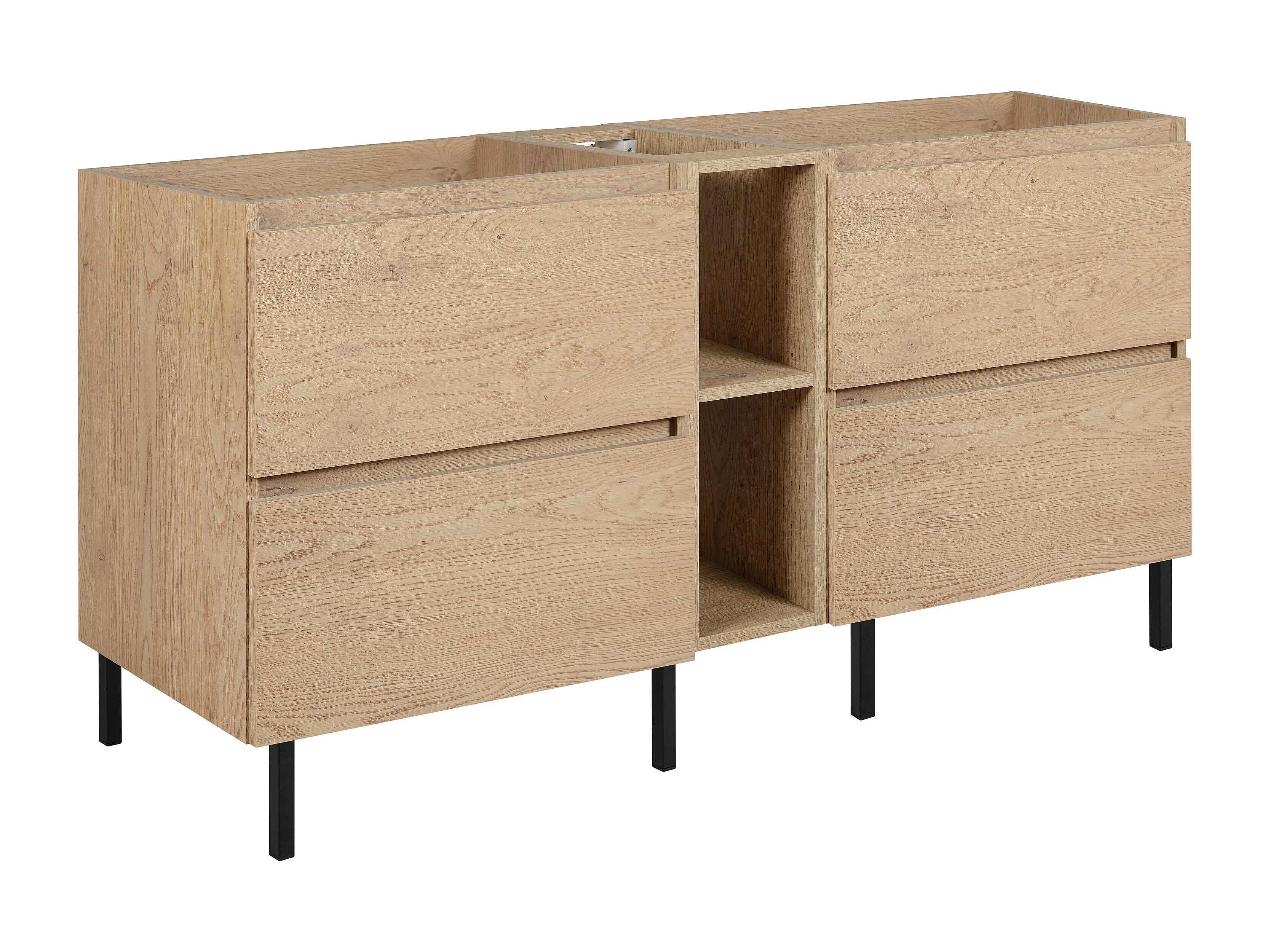 Meuble de salle de bain 140 cm (2 X 60 + 20) + pieds, Couleur : Chêne Clair, 140 x 46 x 80,7 cm, sans plan de travail