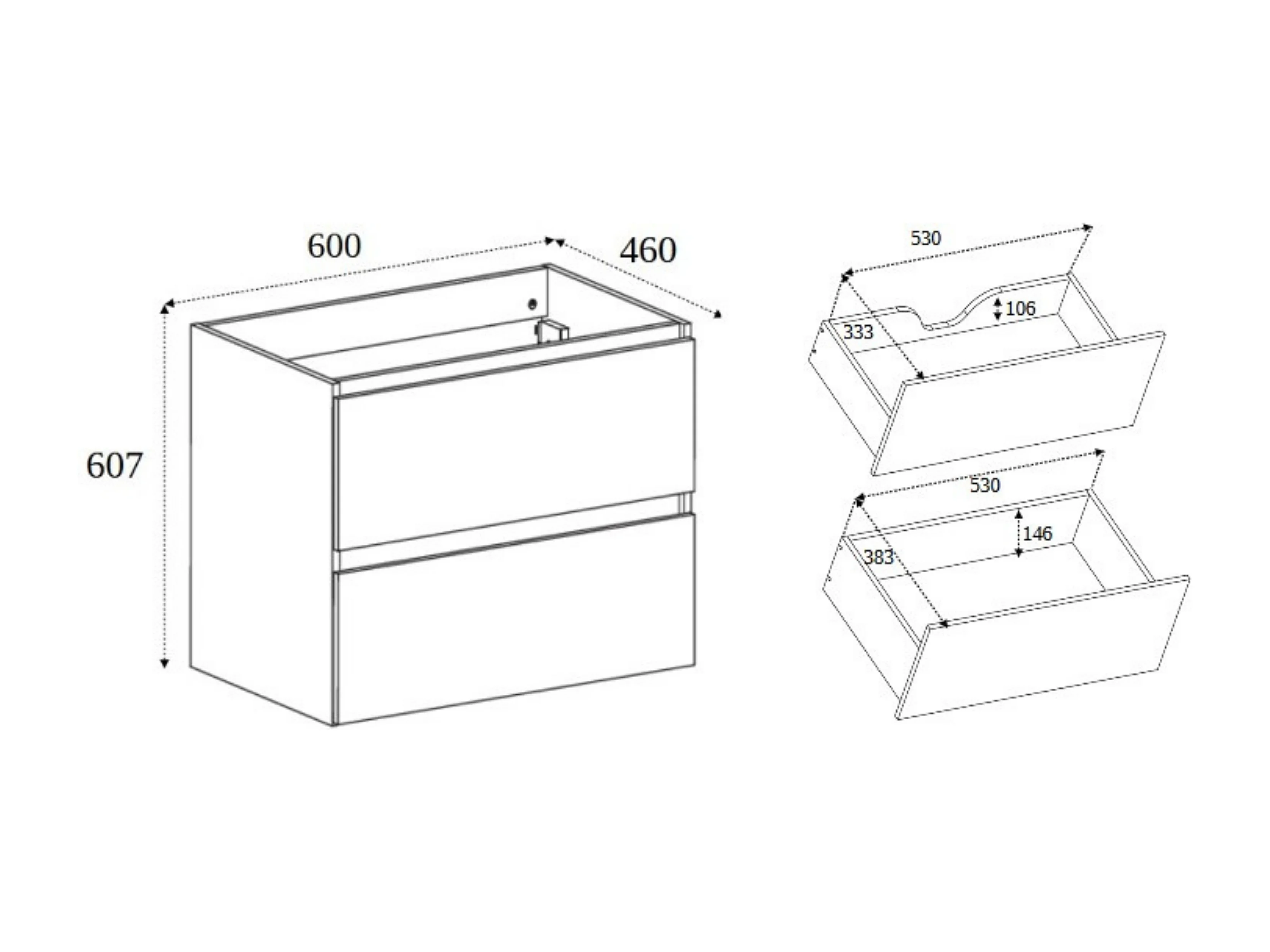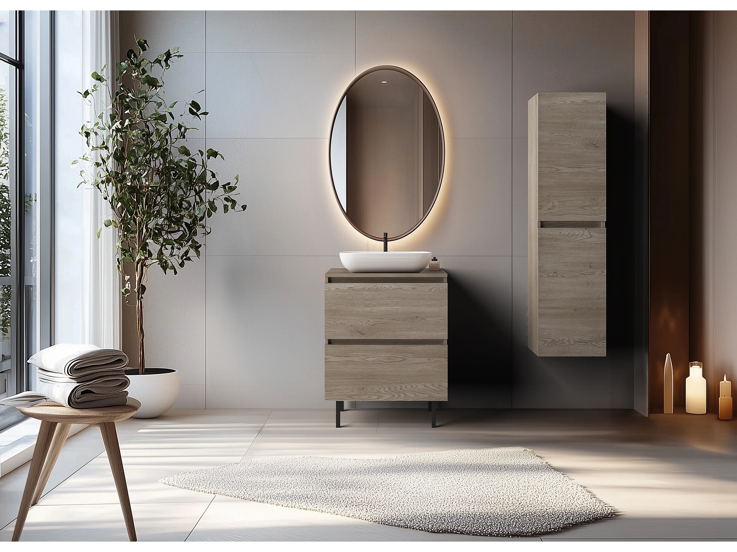 Meuble de salle de bain 60 cm avec plan de travail supérieur + pieds meuble, Couleur: Chêne Foncé, 60 x 46 x 80,7 cm