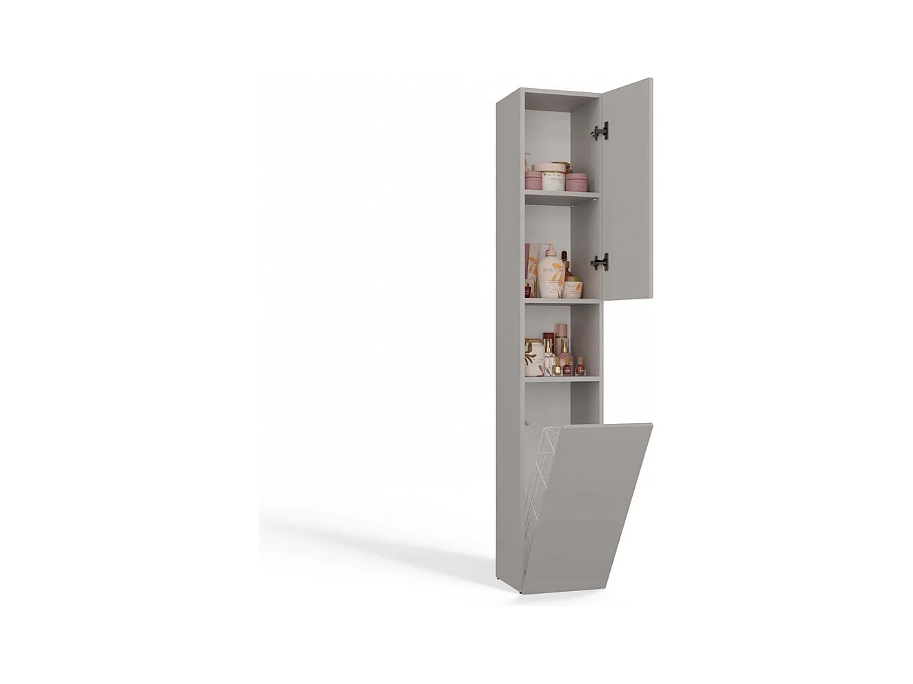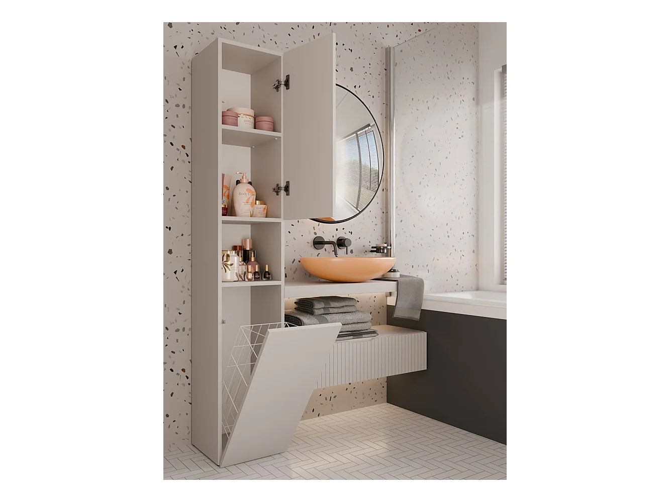 Meuble Colonne de Salle de Bain avec 1 Panier à Linge et 3 Étagères, BZR95-N
