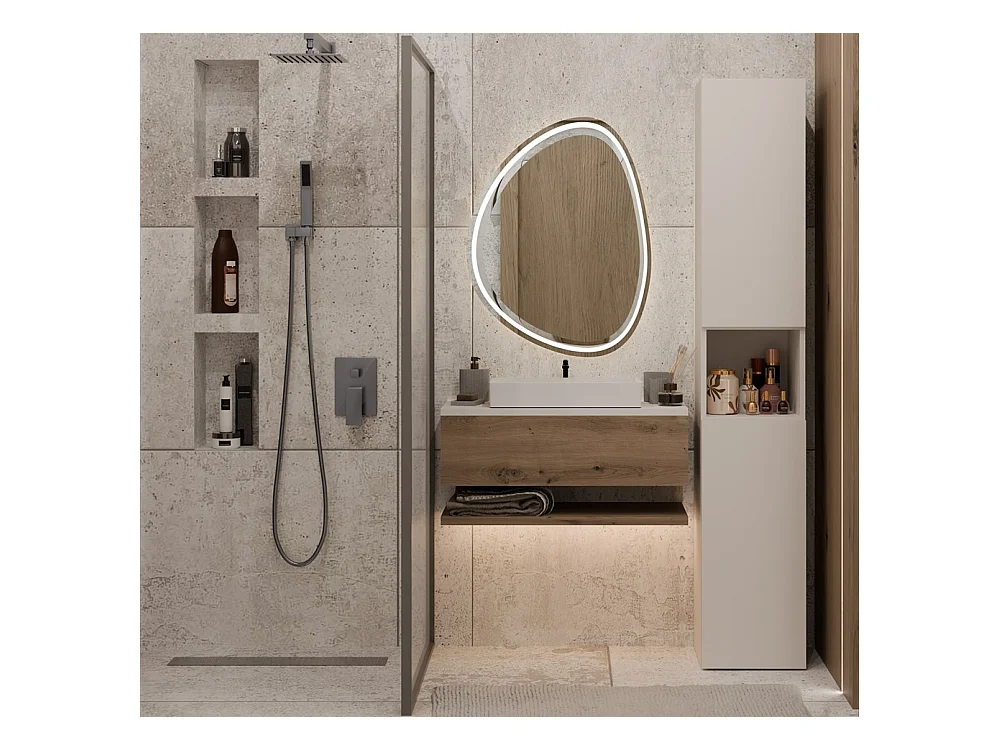 Vitrine、Meuble de salle de bain avec LED - 1 porte vitrées - Naturel