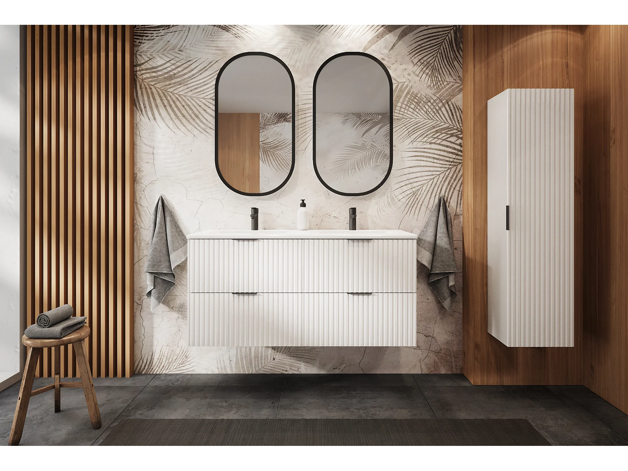 Meuble vasque, Blanc, 120 (2 x 60) x 57 x 46 cm, poignée noire + Plan de travail