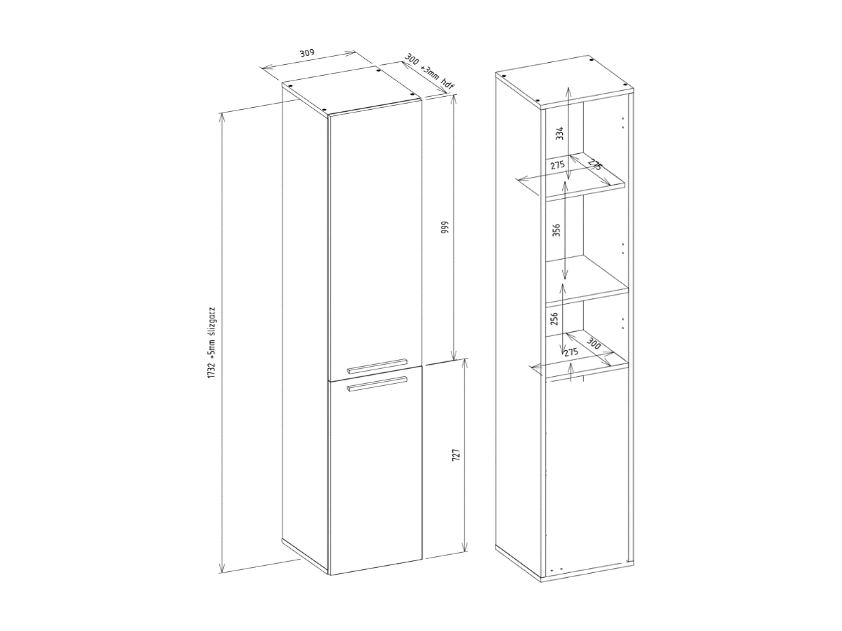 Meuble de salle de bain, Blanc Mat / Blanc Brillant, 30 x 174 x 30 cm