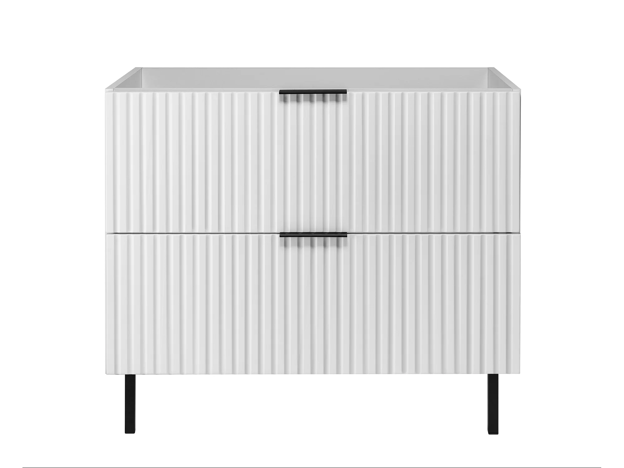 Meuble vasque, Blanc + poignée noire, 80 x 77 x 46 cm, pieds noirs, sans plateau