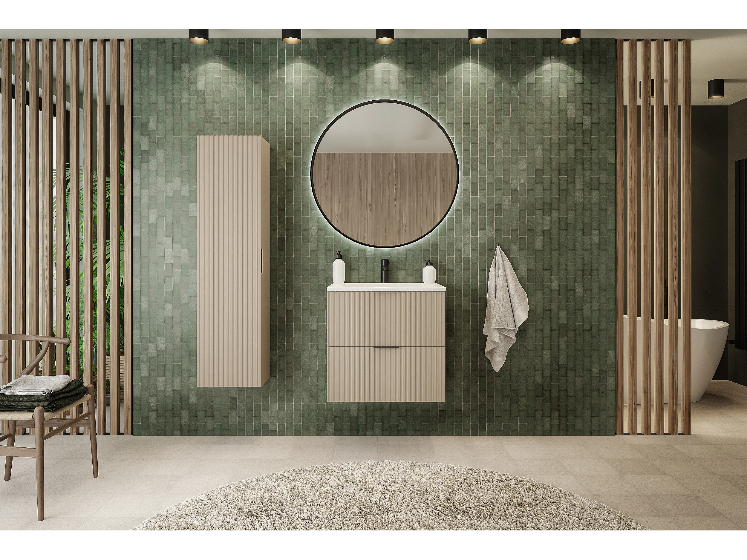 Meuble vasque, Cachemire, 60 x 57 x 46 cm, poignée noire + Plan de travail