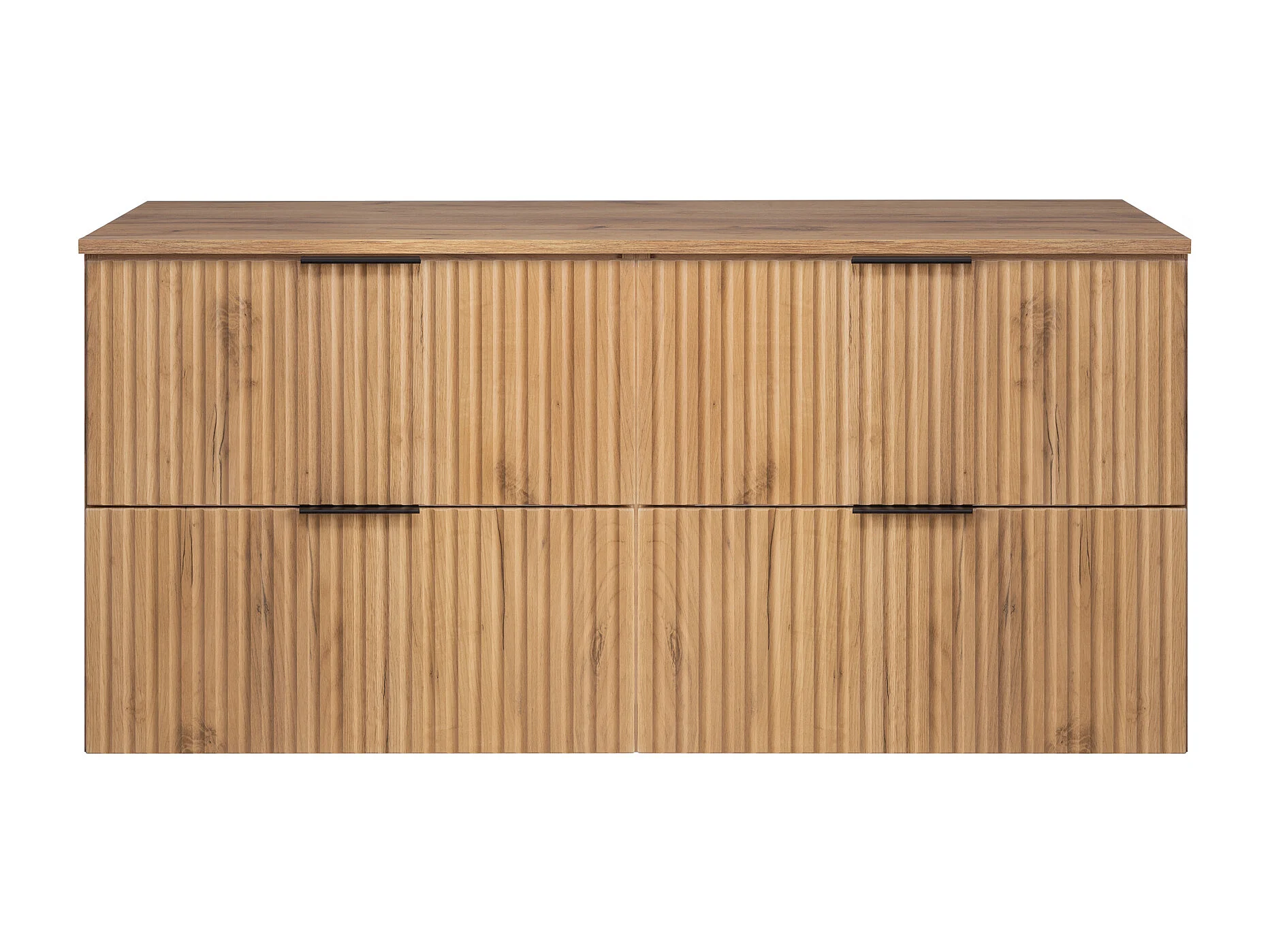 Meuble vasque, Chêne Craft, 120 (2 x 60) x 57 x 46 cm, poignée dorée + Plan de travail