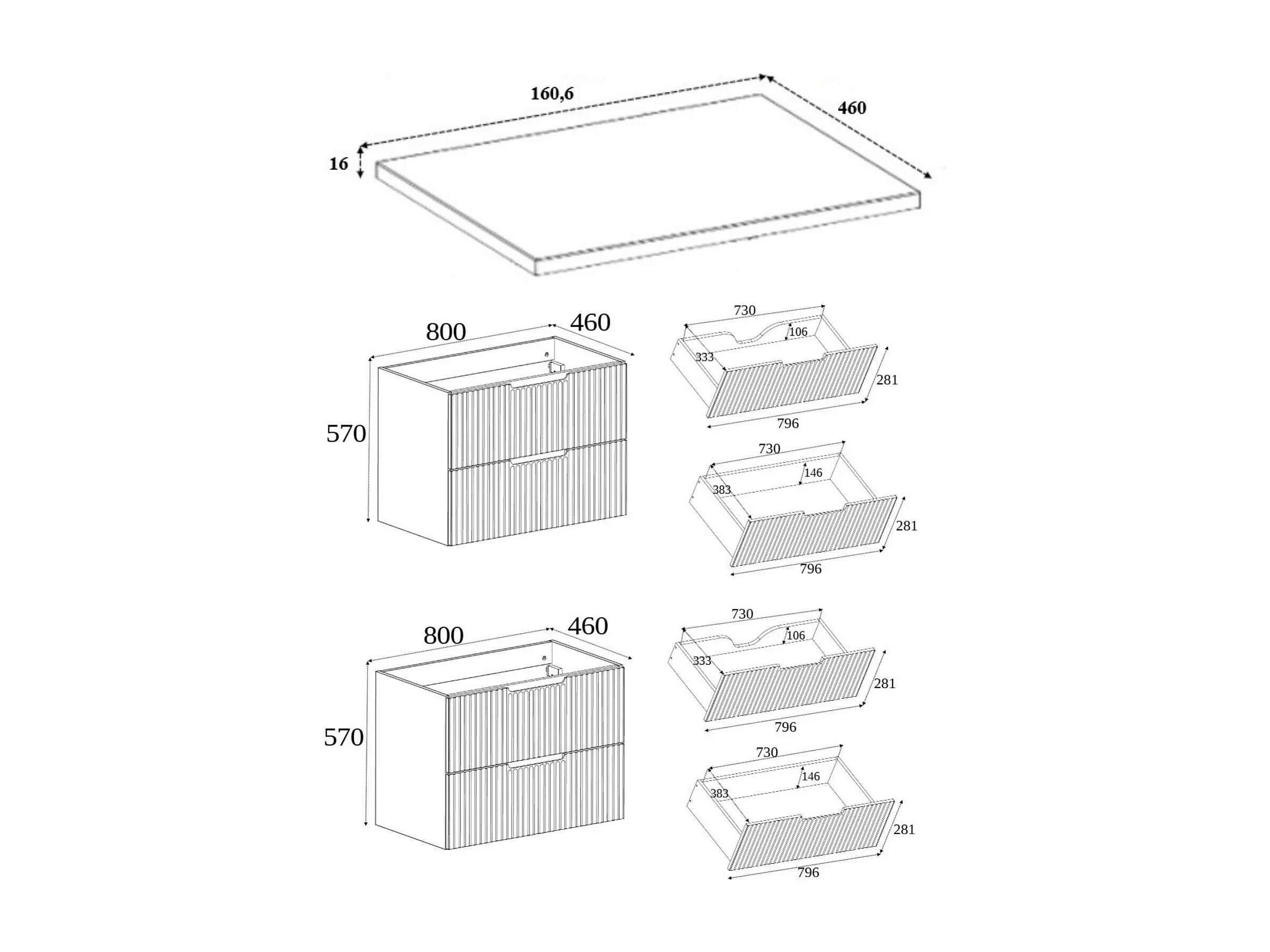 Meuble de salle de bain, noir / chêne Craft, 160 (2 x 80) x 58,6 x 46 cm