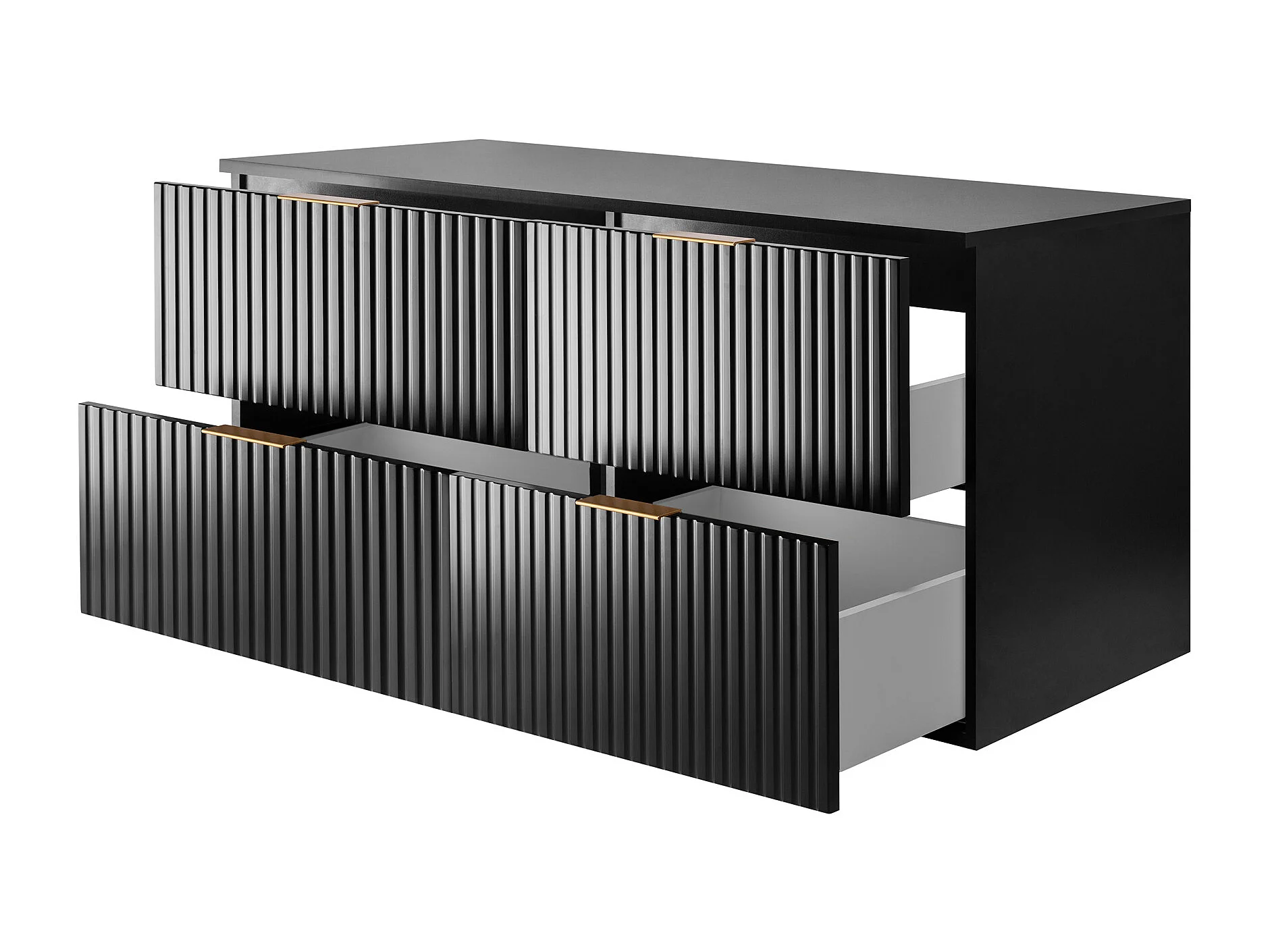 Meuble vasque, Noir Mat, 120 (2 x 60) x 57 x 46 cm, poignée dorée + Plan de travail