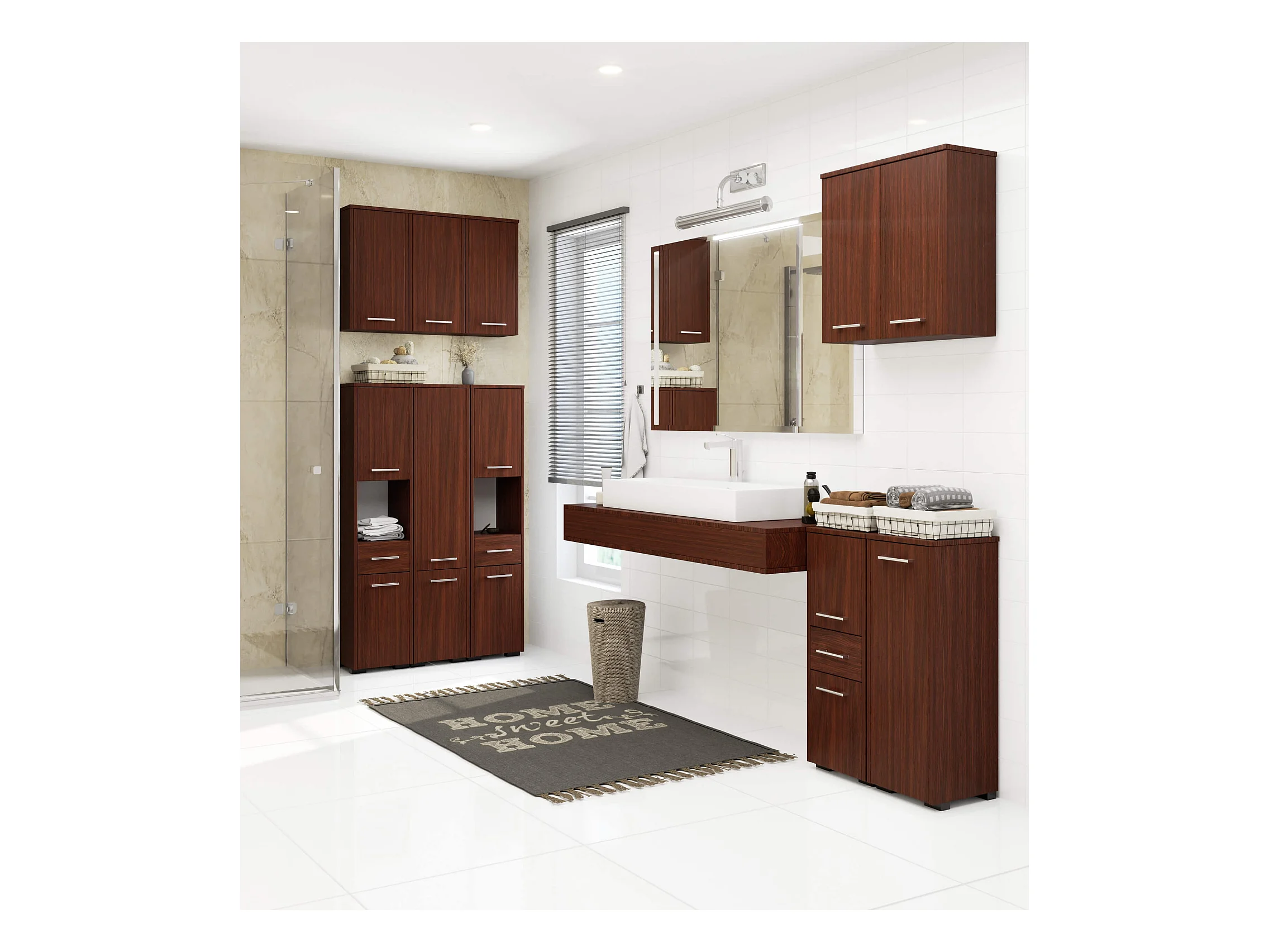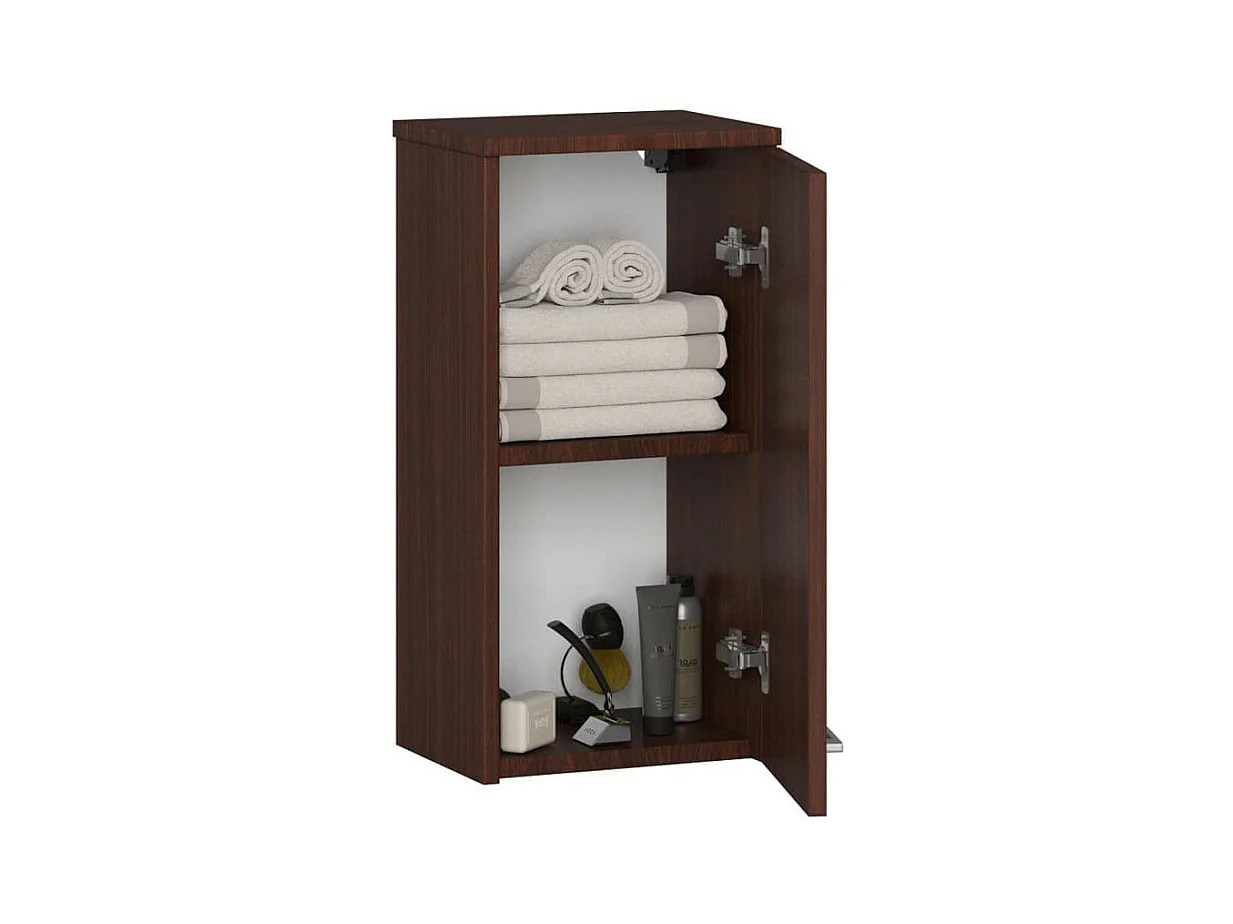 Meuble de salle de bain suspendu : 1 porte, 2 étagères, wengé, 30 x 60 x 22,5 cm