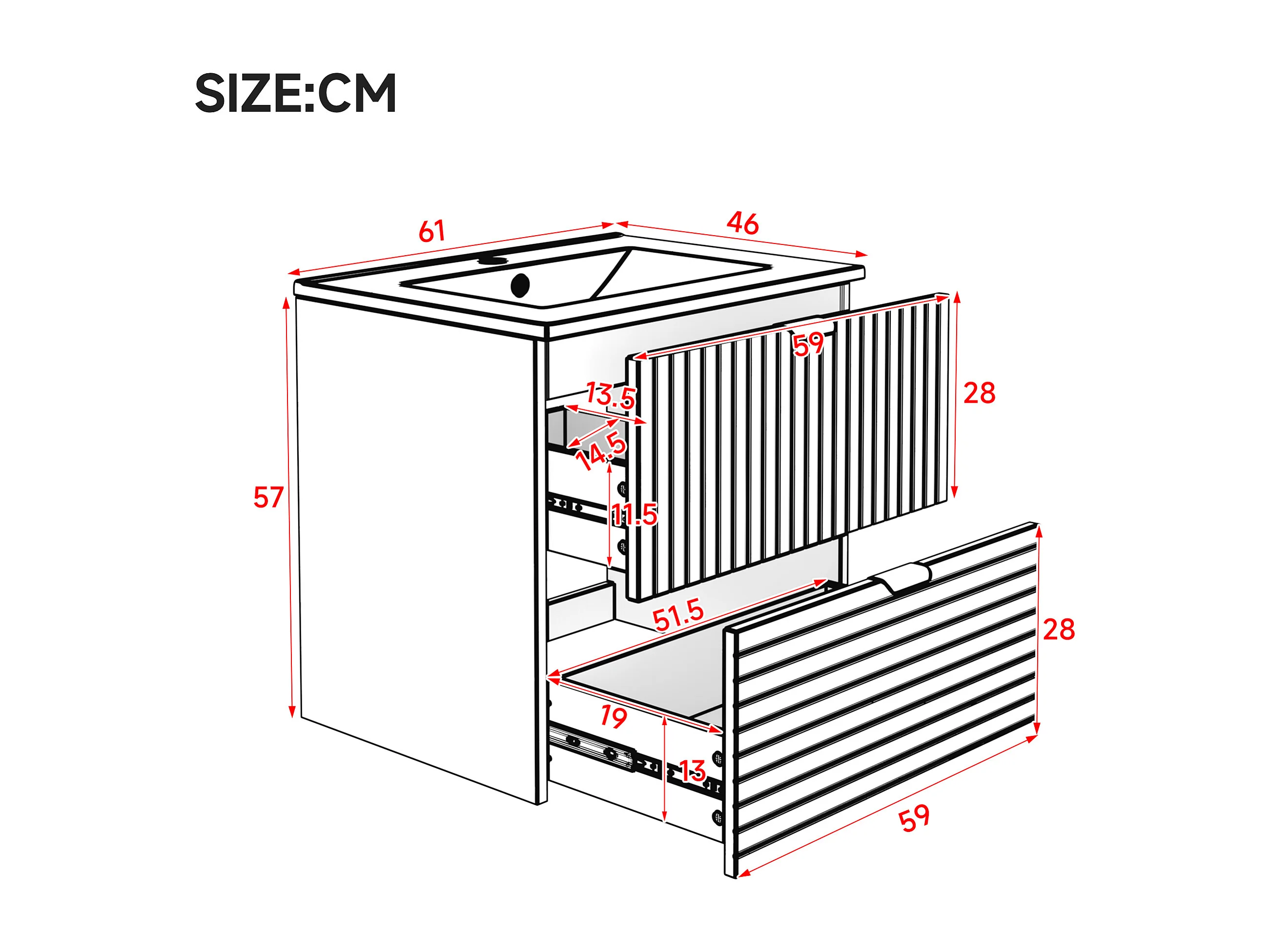 Meuble de salle de bain suspendu 61x46x57 cm - Vasque intégrée - 2 tiroirs - MDF entièrement peint - Vert menthe