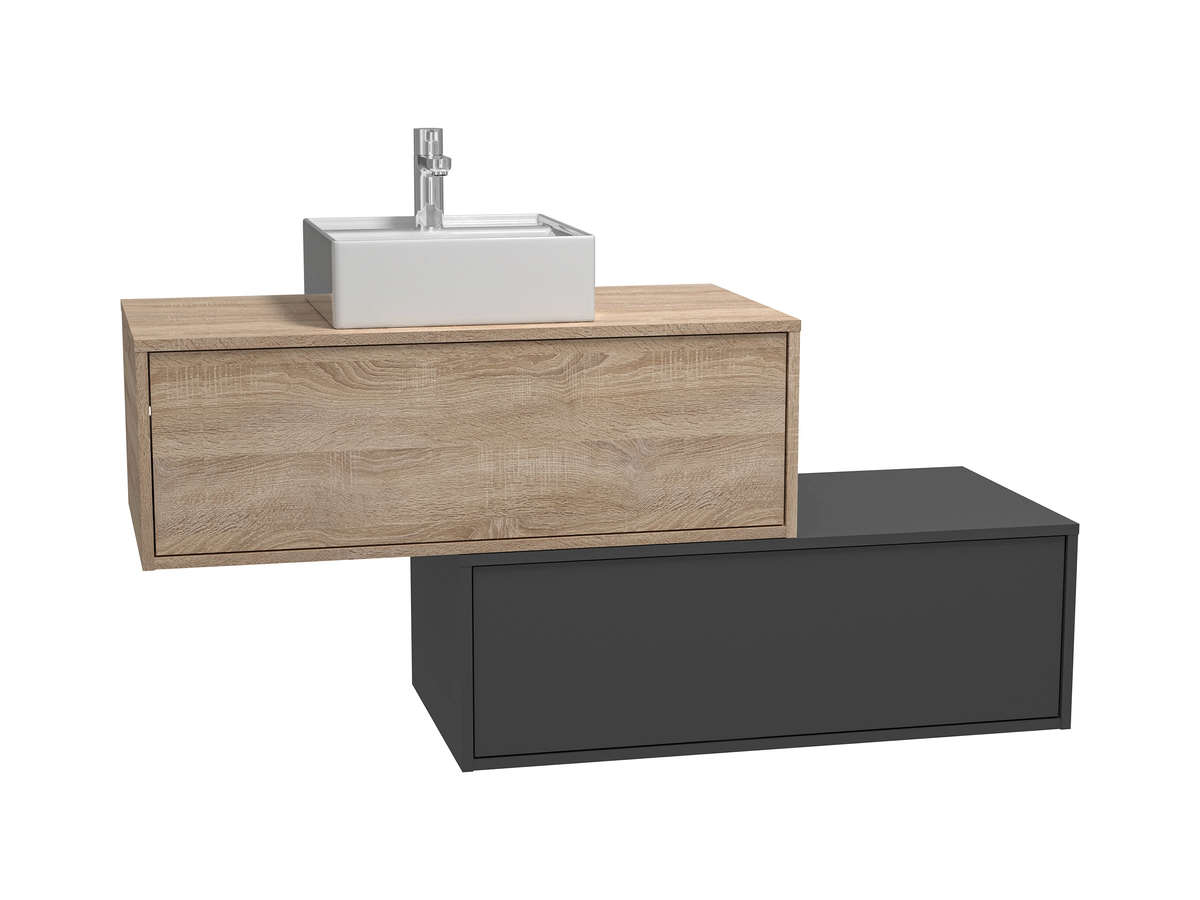 Meuble de salle de bain suspendu naturel clair et anthracite avec simple vasque carrée et deux tiroirs - 94 cm - TEANA II