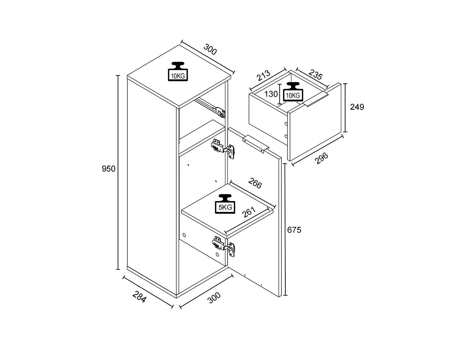 Bathroom furniture Midischrank Nilosi White / Anthracite H. 95 x W. 30 x D. 30 cm