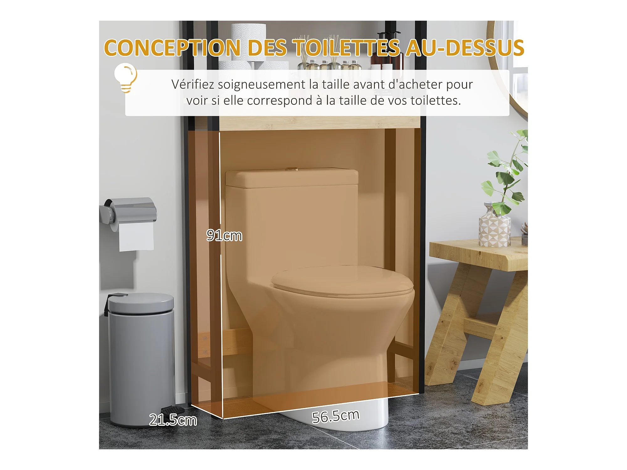 Étagère de toilettes WC 3 niveaux style cosy bambou