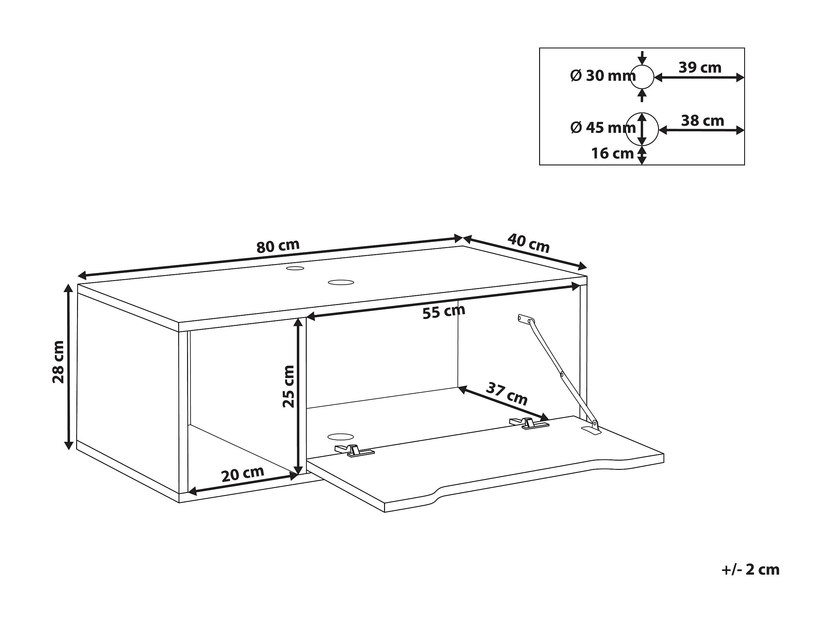 Meuble lavabo mural CASCAVEL 80 cm Marbre noir