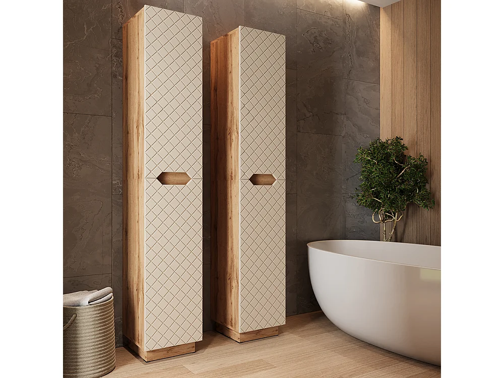 Meuble salle de bain chêne/cachemire avec structure en carreaux 33x35x186 lotta