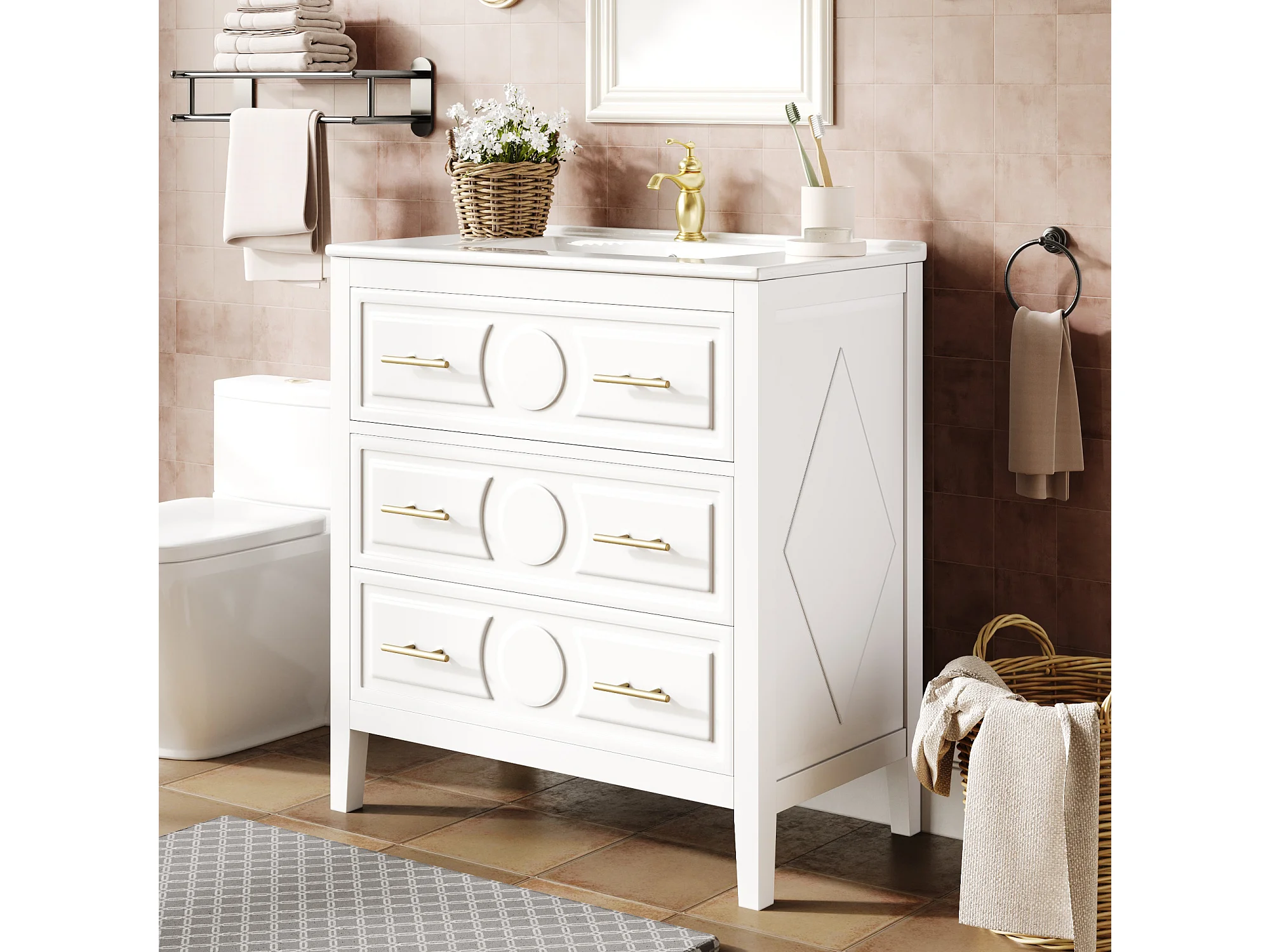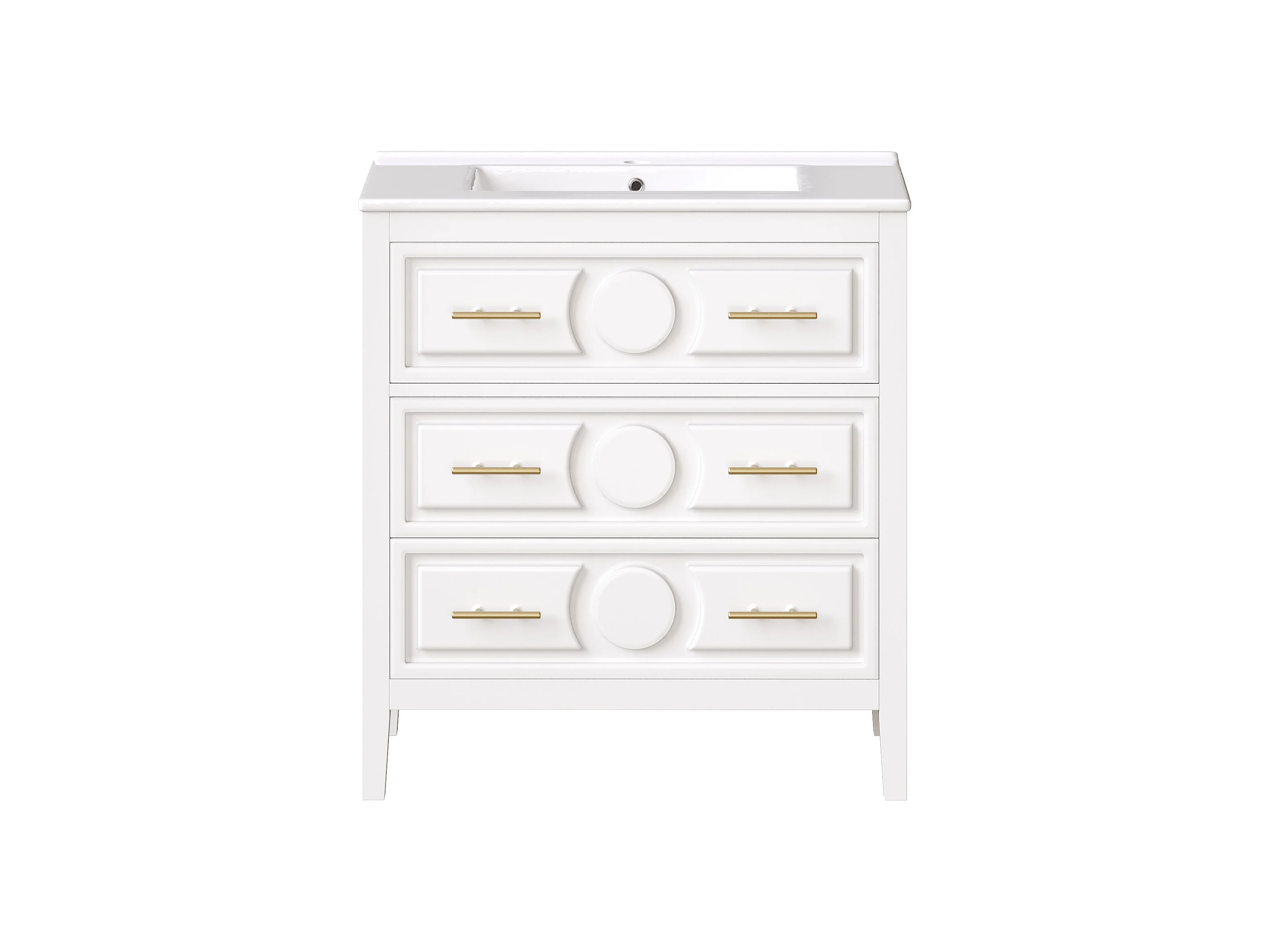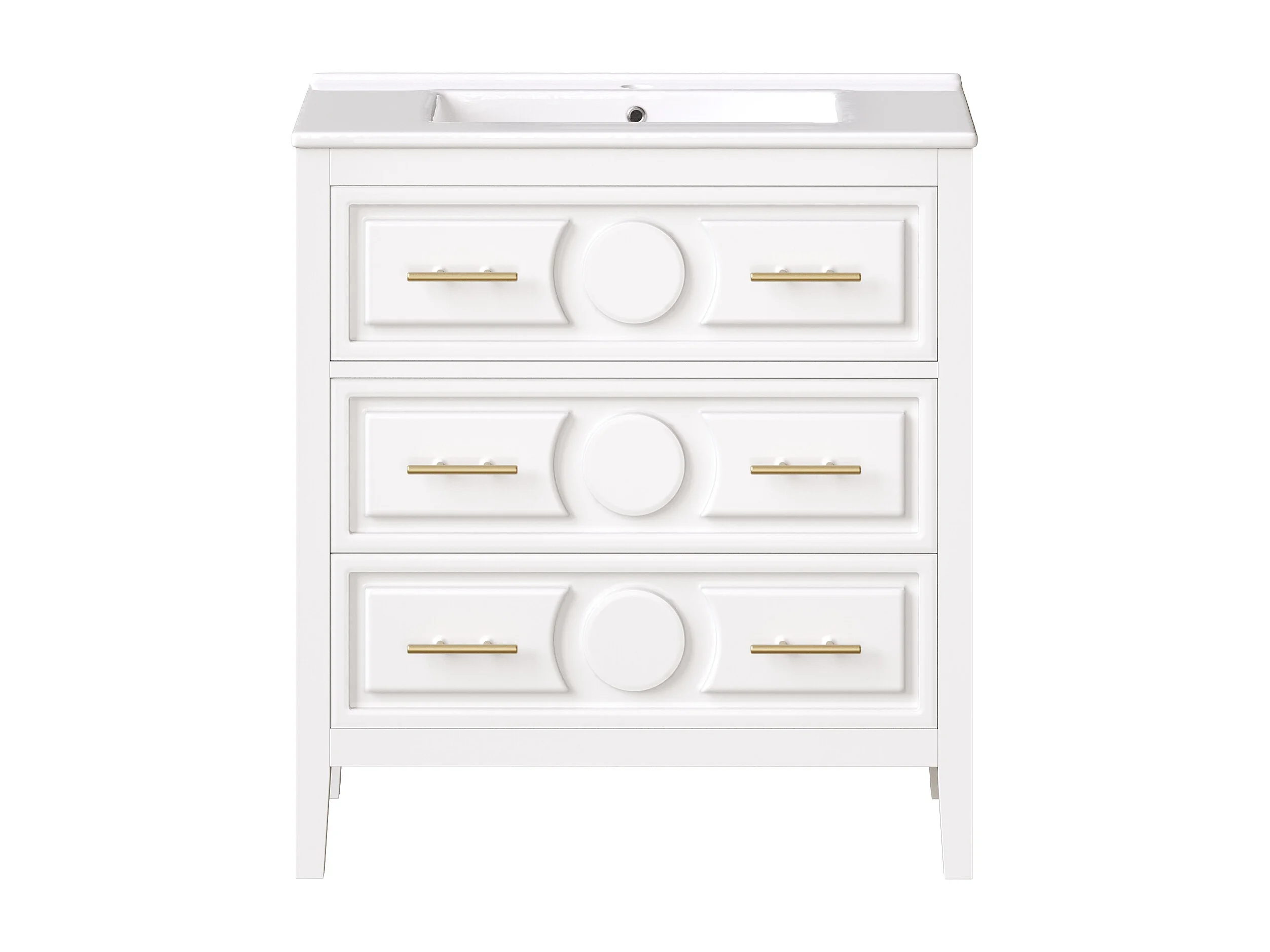 Meuble simple vasque en céramique - 81 x 46.5 x 86.5 cm - avec tiroirs - MDF - blanc