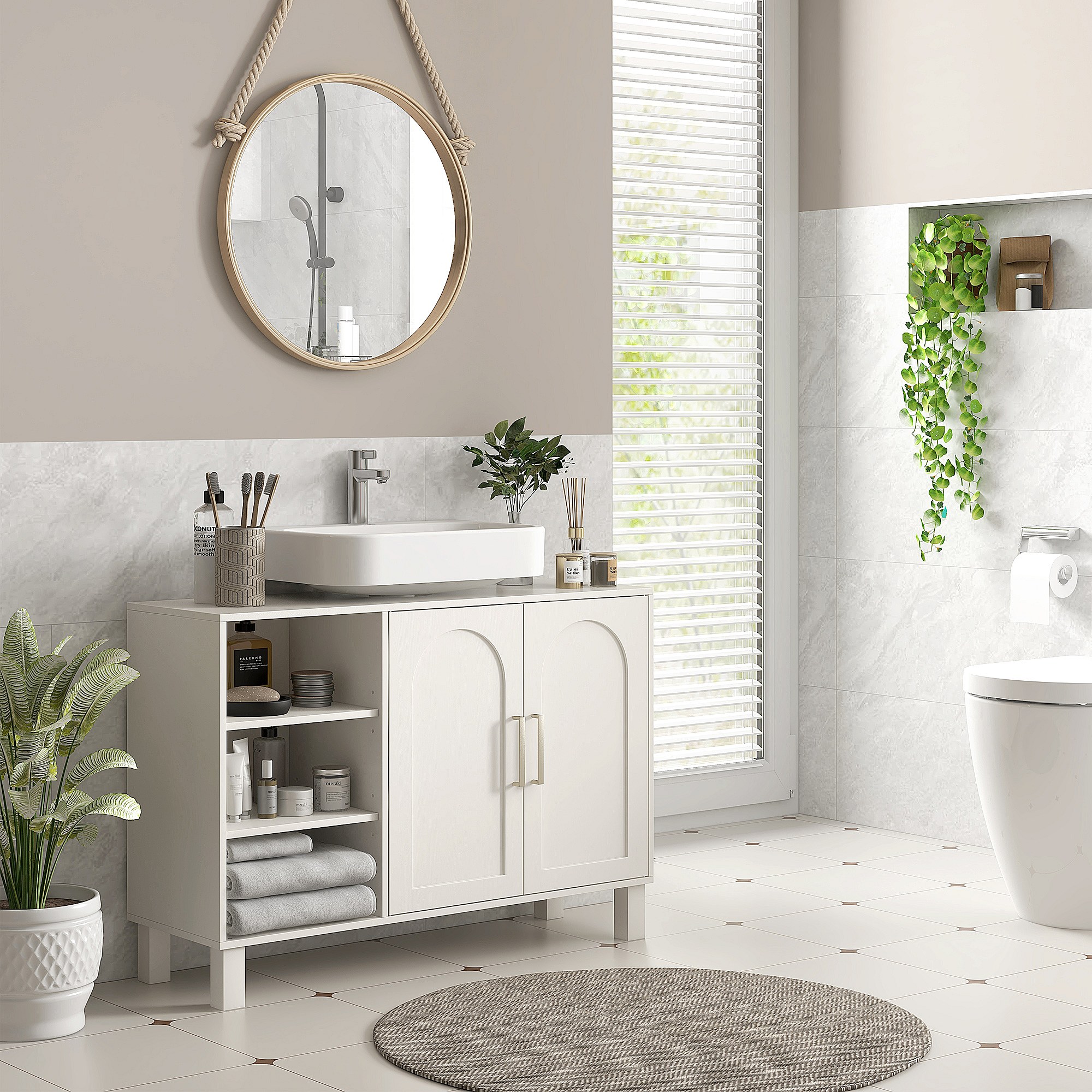 Meuble sous vasque - 2 portes, étagère, 3 niches - MDF crème