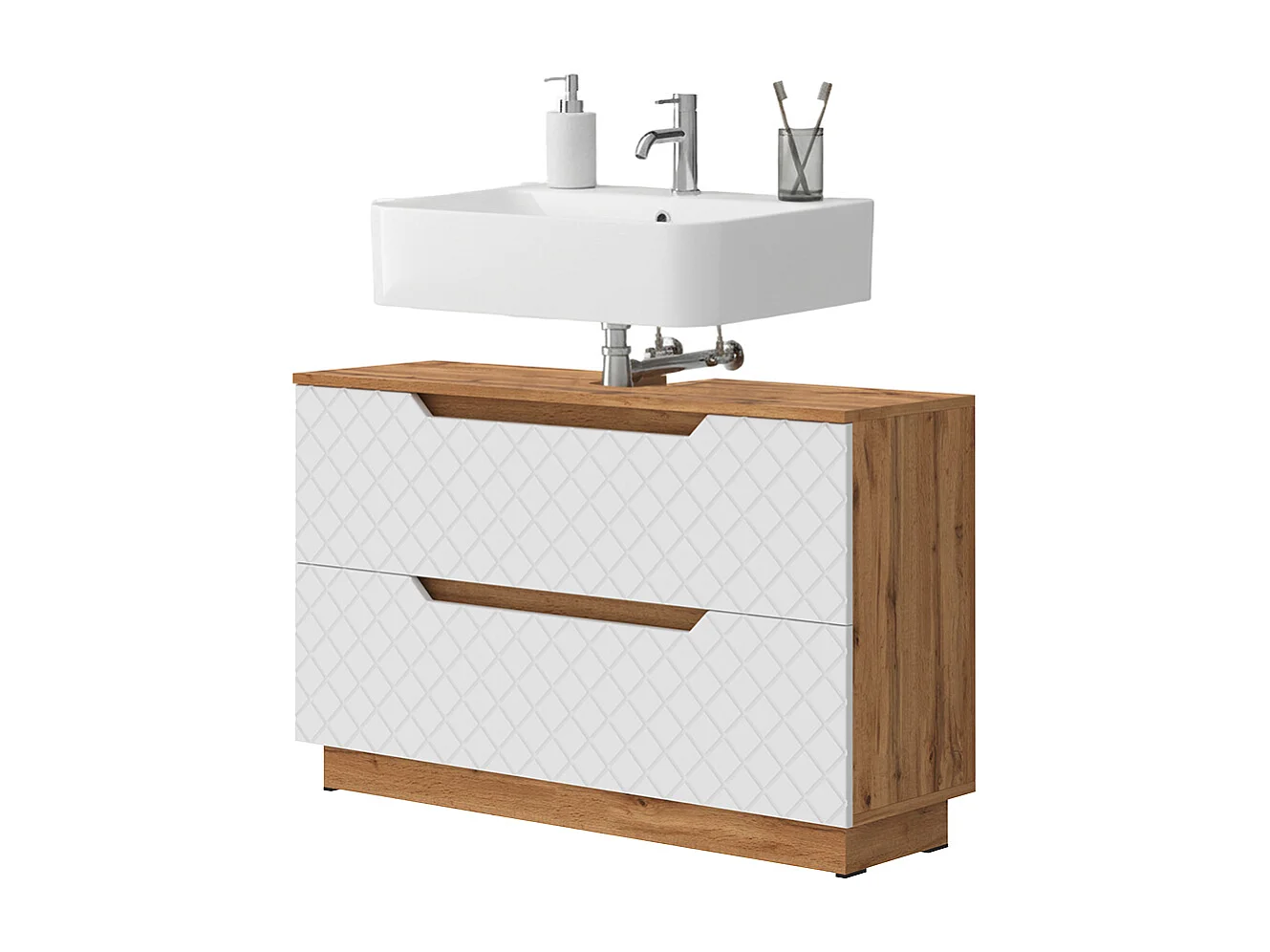 Meuble sous vasque simple chêne/blanc avec structure en carreaux 99.4x32x62.5 lotta