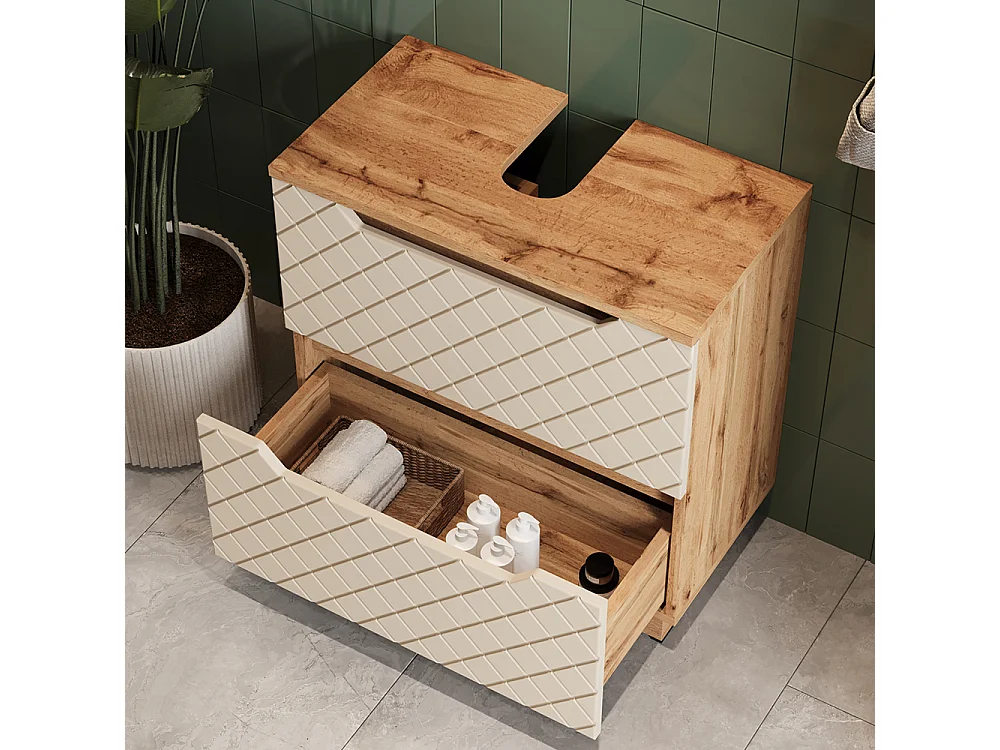 Meuble sous vasque simple chêne/cachemire avec structure en carreaux 79.6x32x62.5 lotta