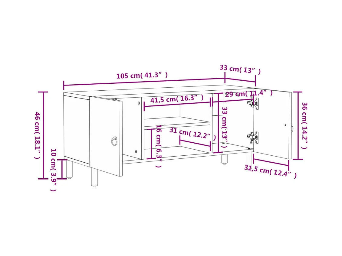 Meuble TV 105x33x46 cm Bois massif de manguier