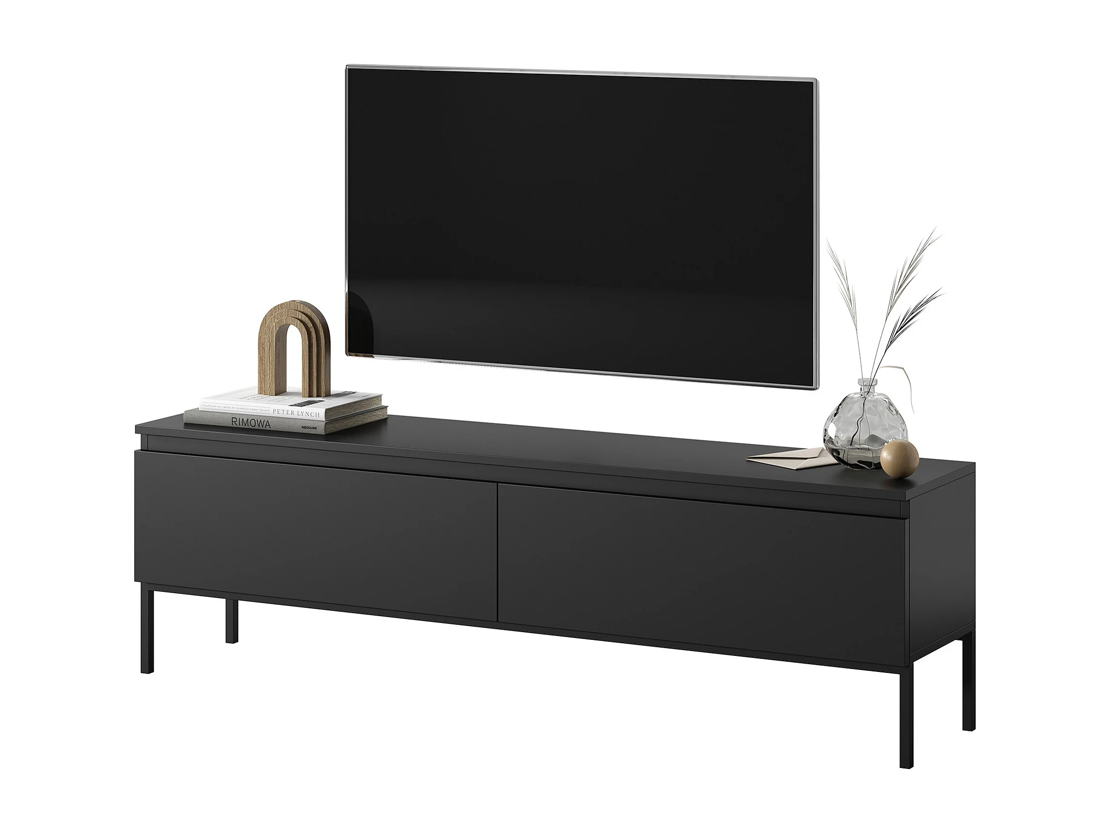 Meuble TV - 150 cm - noir et pieds noirs - Bemmi