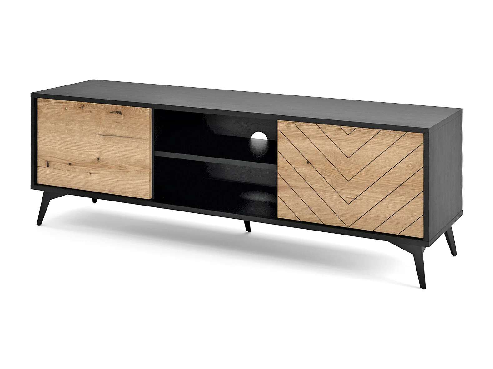Meuble TV - 154 cm - noir/chêne Evoke motif à chevrons - BOULIA