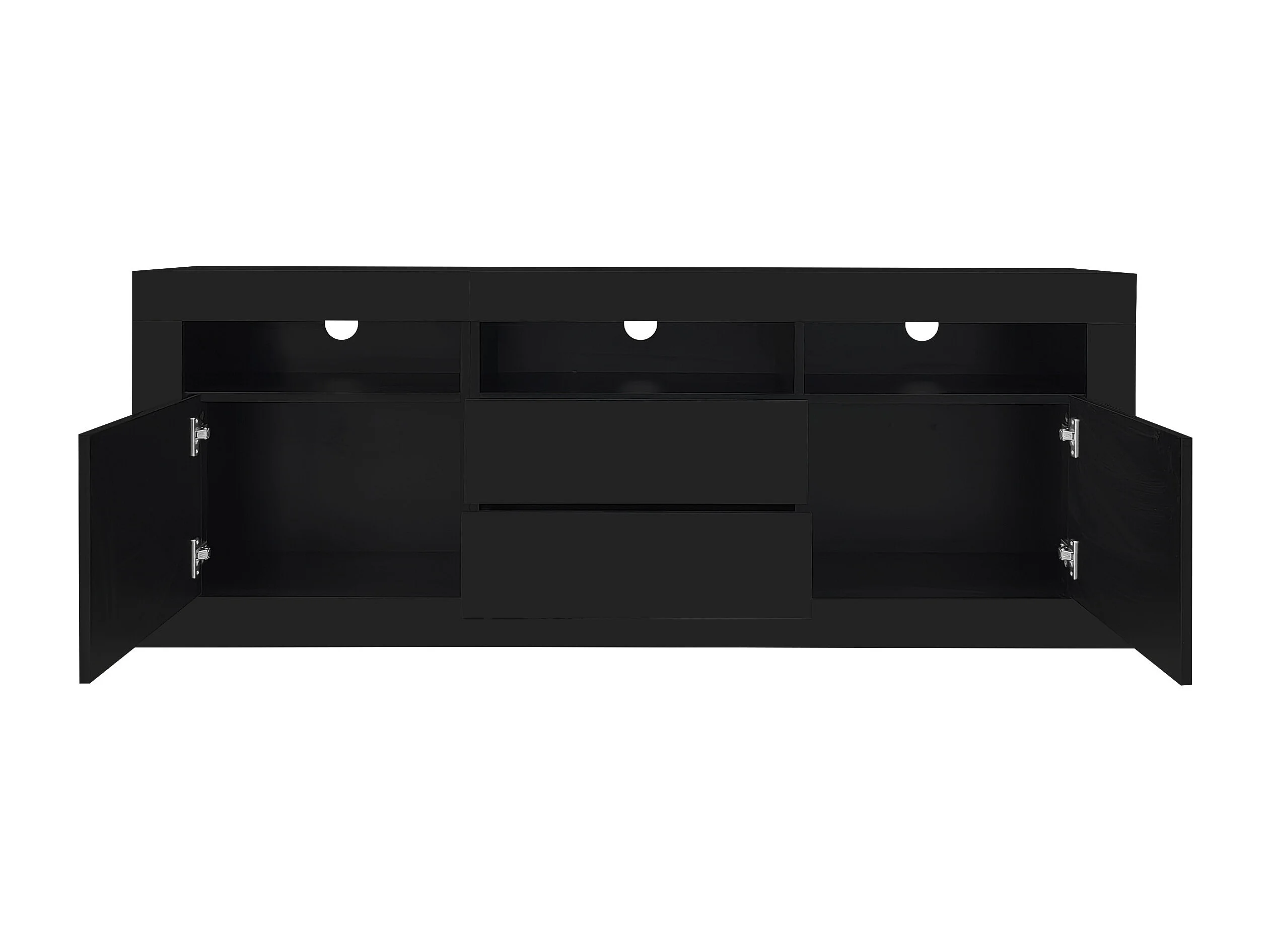 Meuble TV 160x35x60 cm LED avec 2 portes 2 tiroirs et rangement ouvert - bois - noir