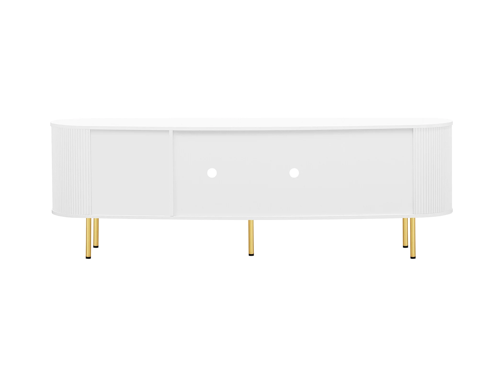 Meuble TV avec 2 tiroirs et 2 portes - 170 x 34 x 45 cm - Bois MDF - Poignées et pieds dorés - Blanc