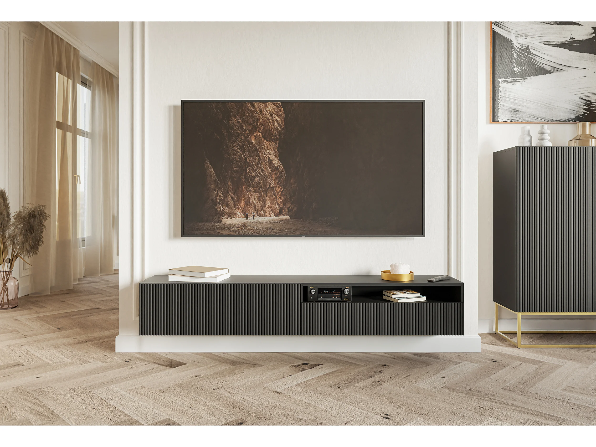 Meuble TV - 175 cm - suspendue avec niche - noir - VELDIO