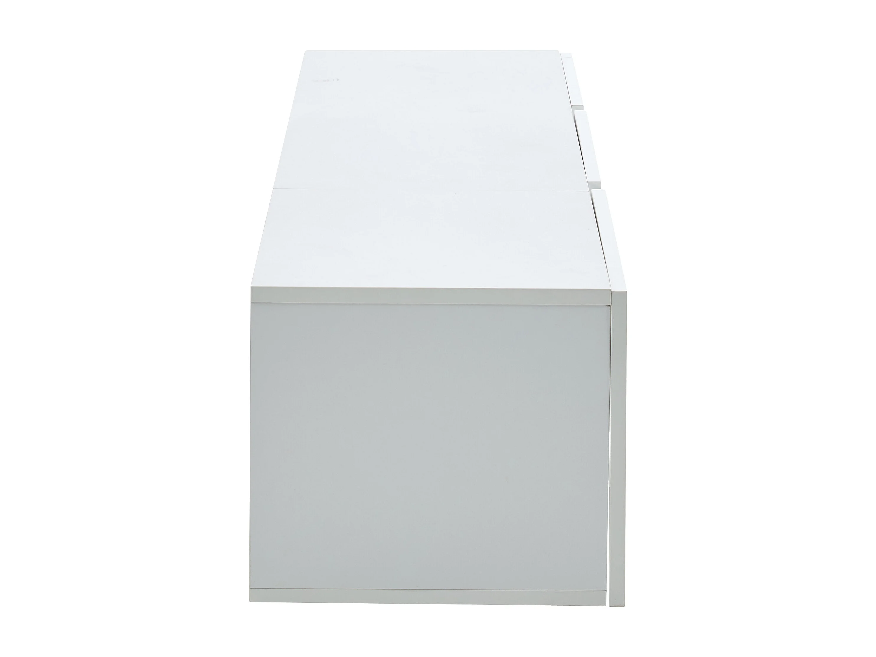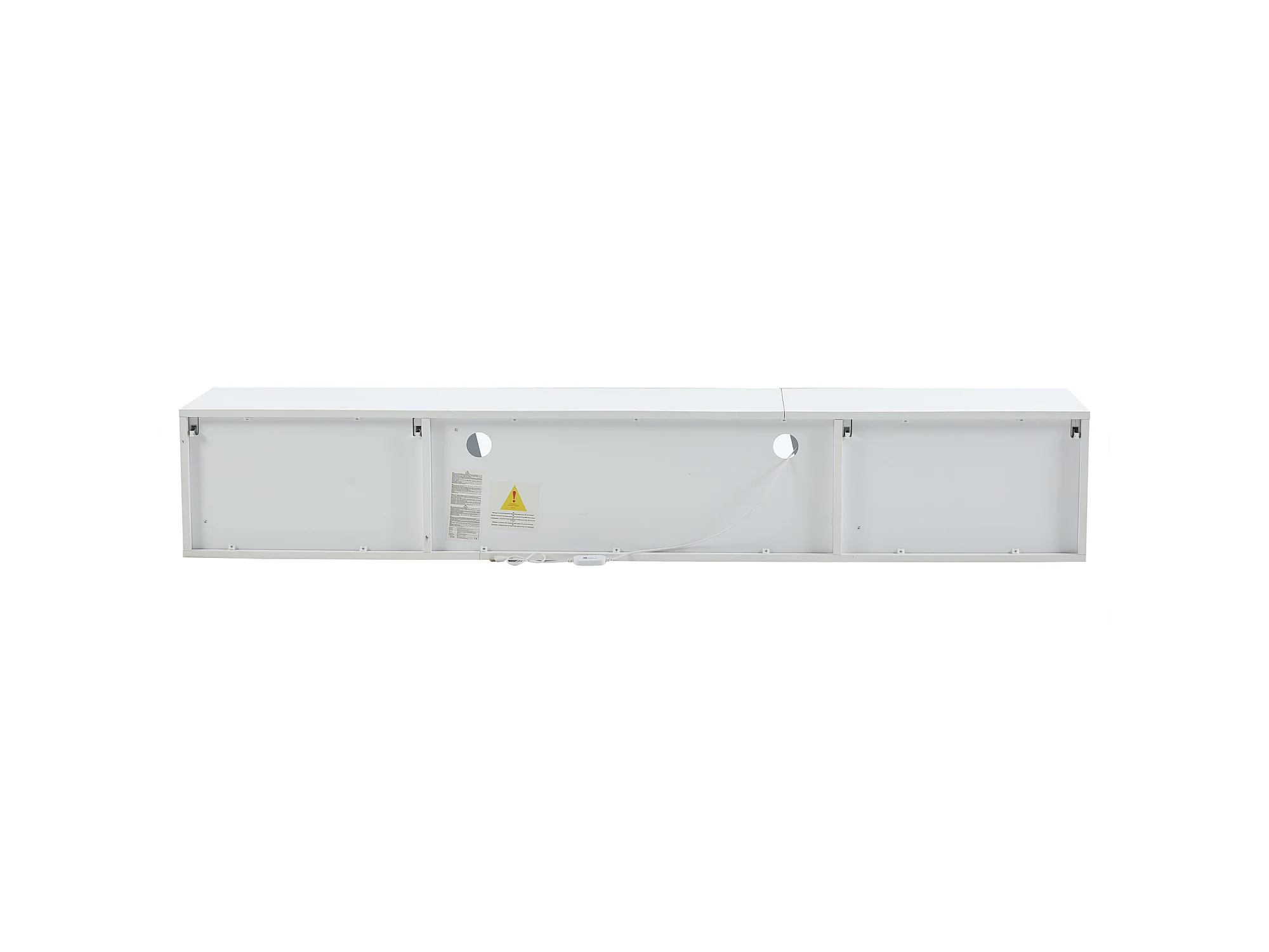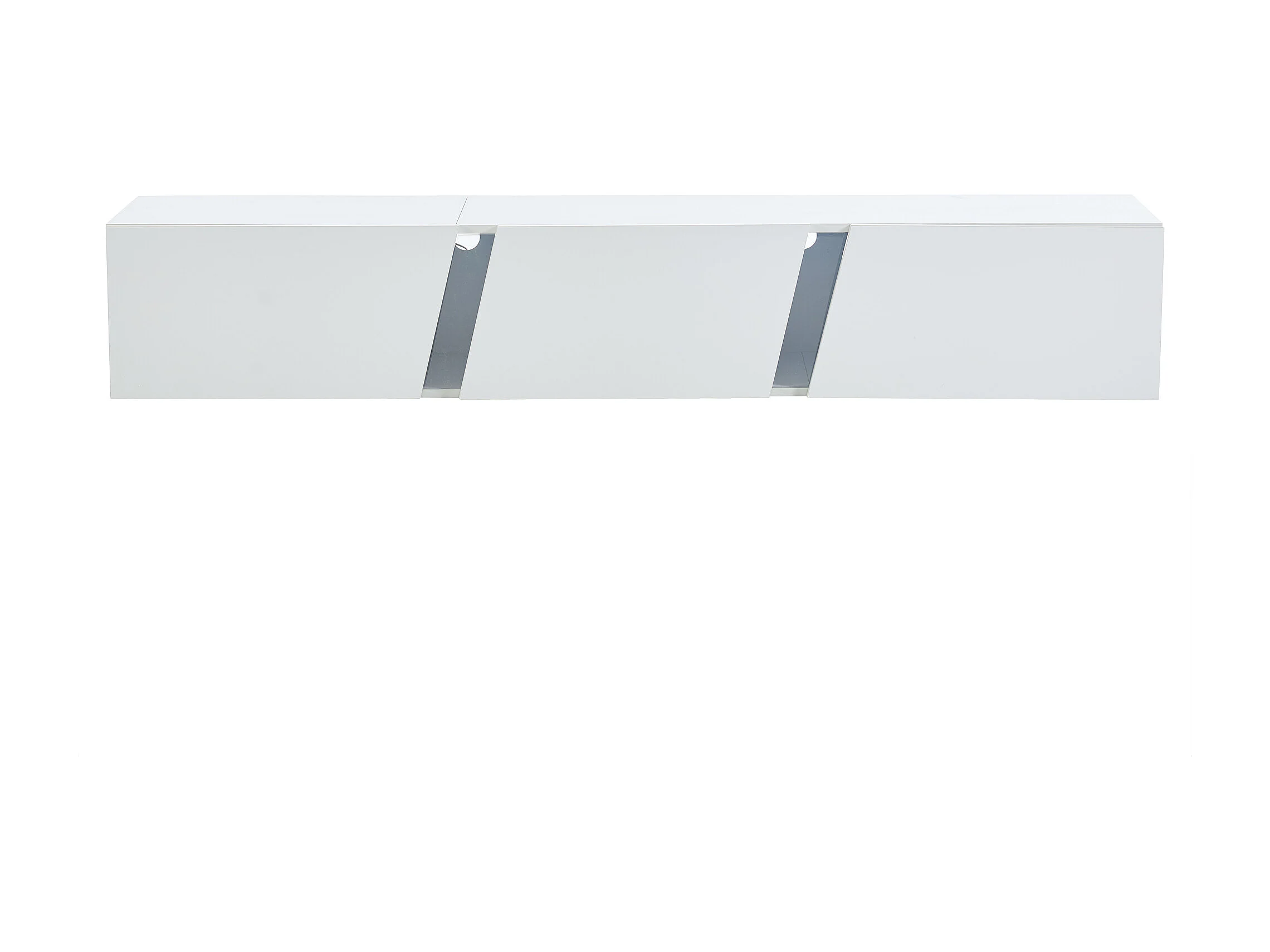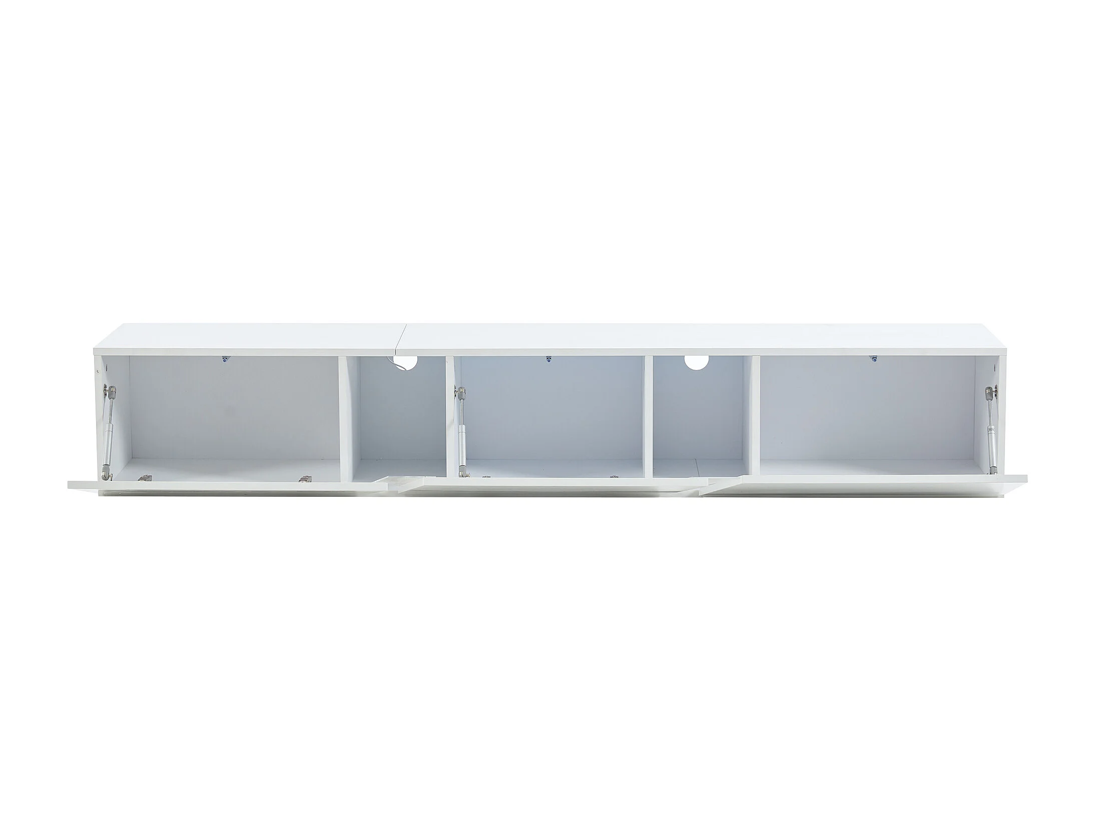 Meuble TV mural 180x35x30 cm, LED contrôlée par application, 3 portes abattantes, panneau de particules blanc