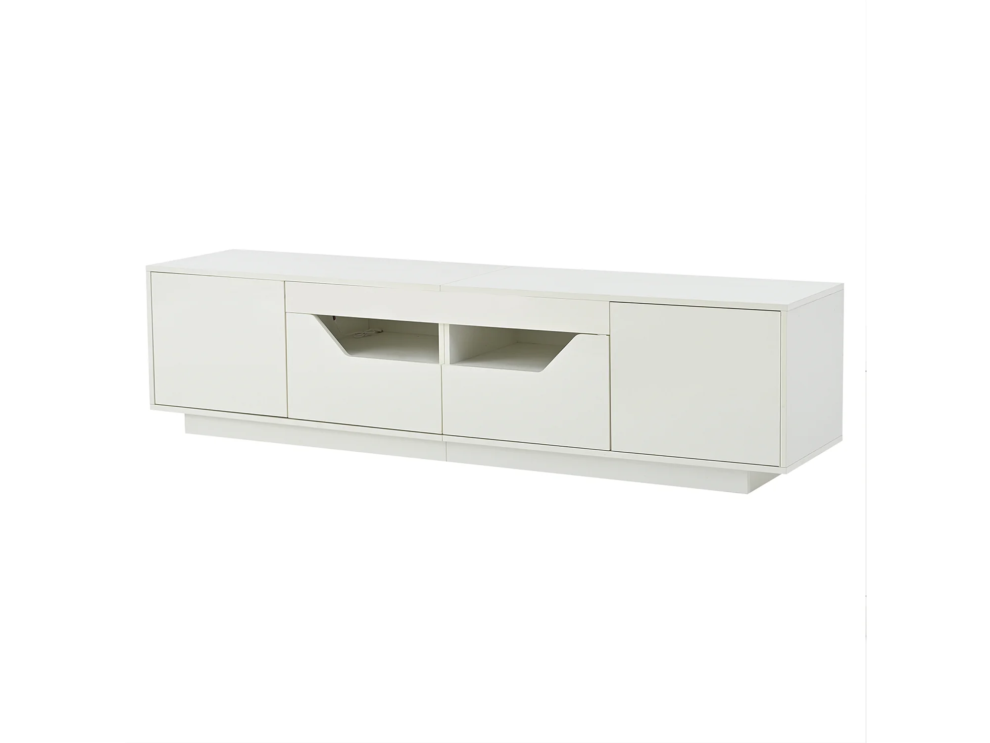 Meuble tv 180x40x45cm LED avec 2 portes et 2 tiroirs de rangement - table tv moderne en bois - blanc