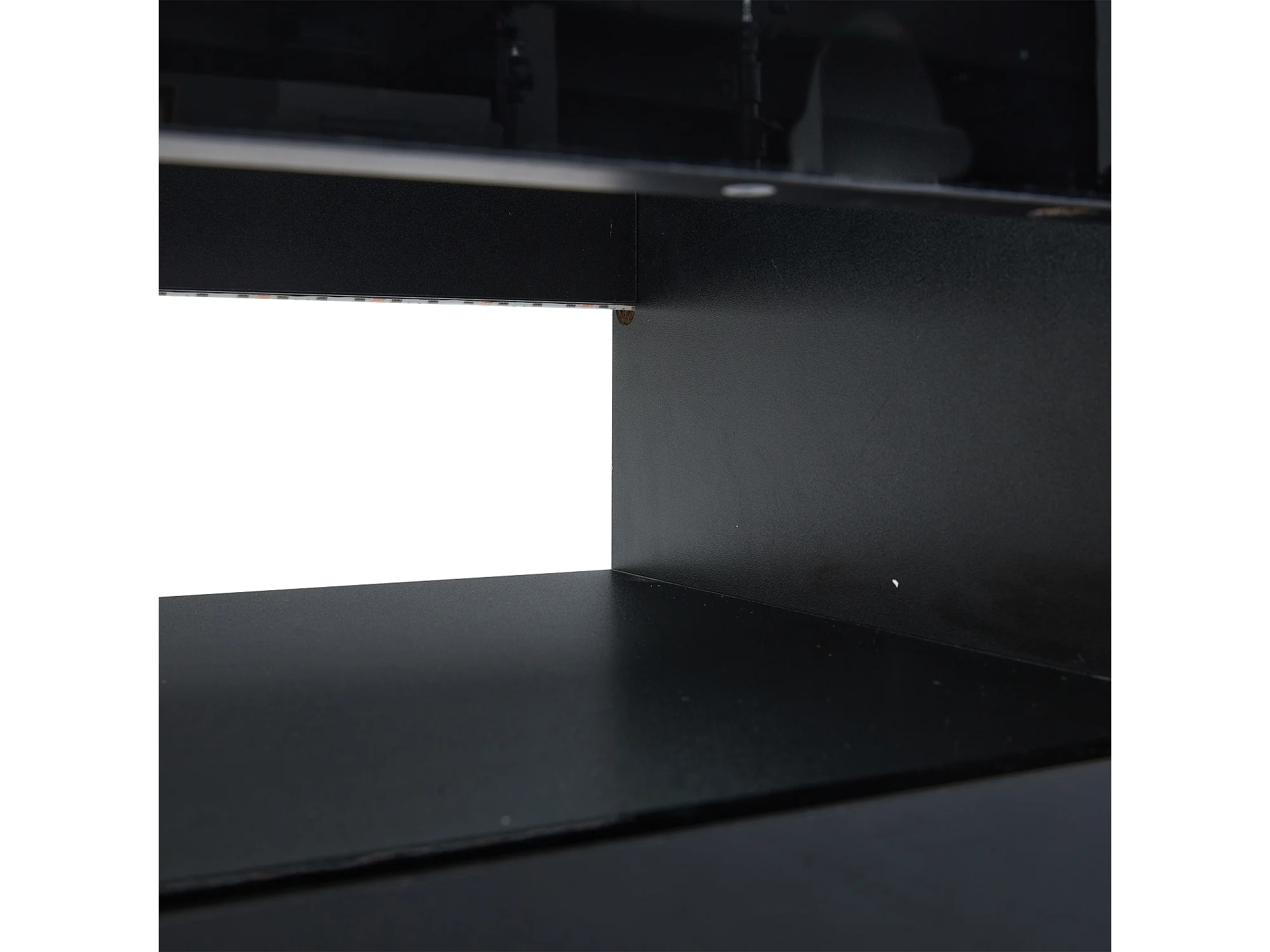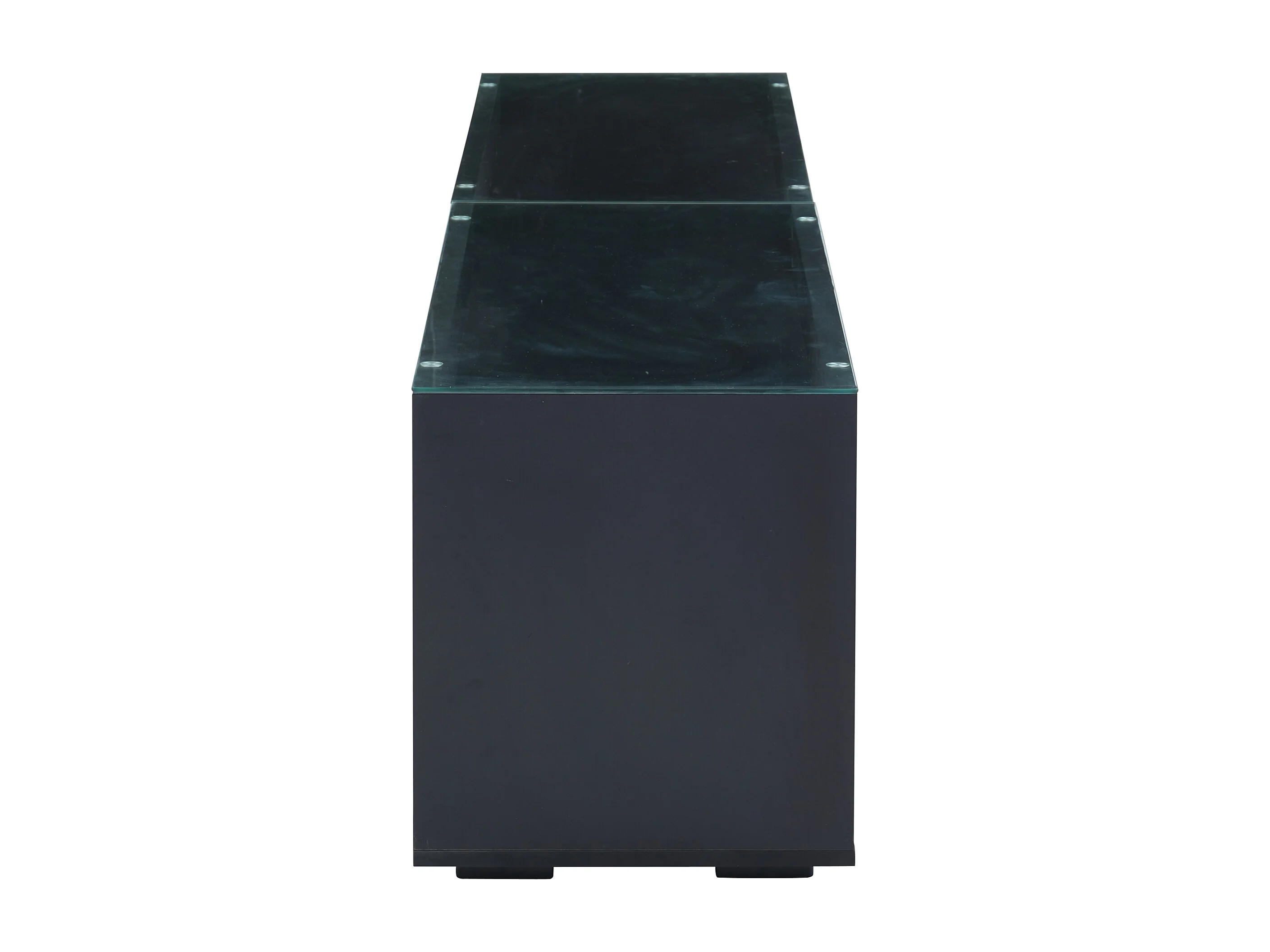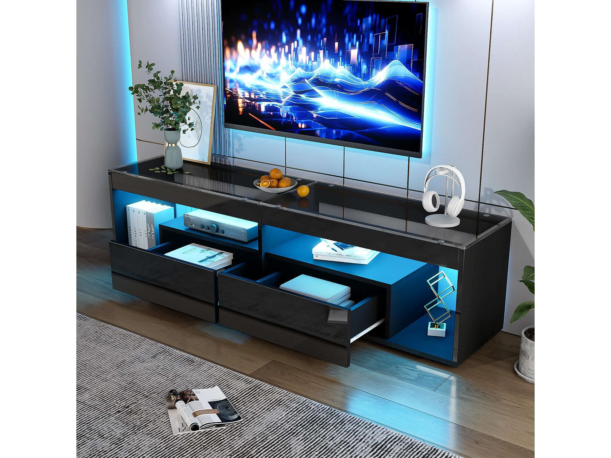 Meuble TV 180x40x46 cm LED salon 2 tiroirs et rangement ouvert en bois - verre décoratif - noir