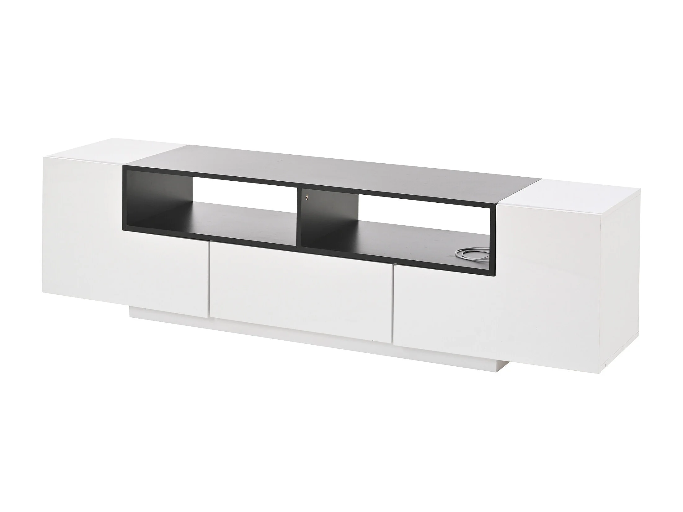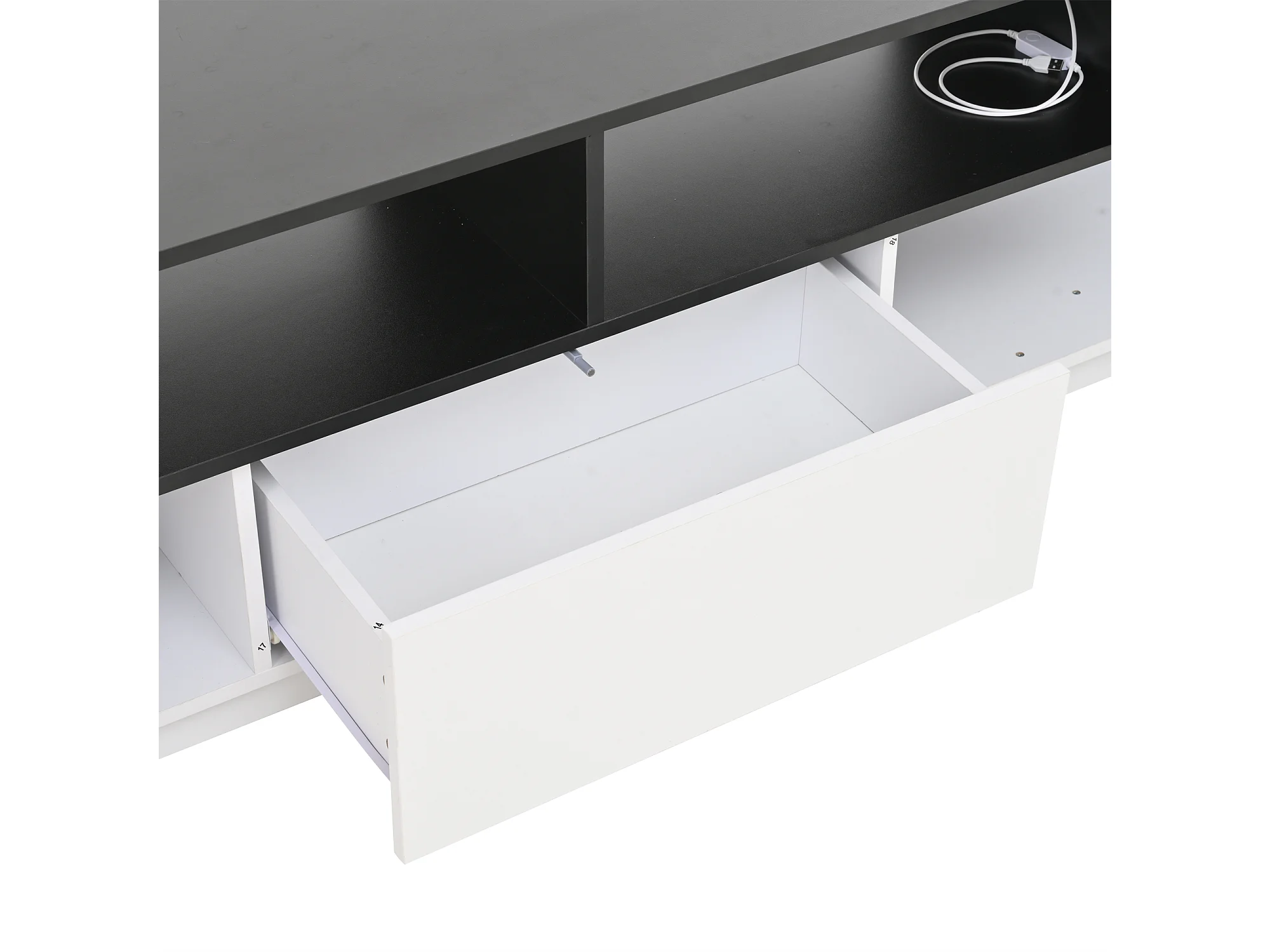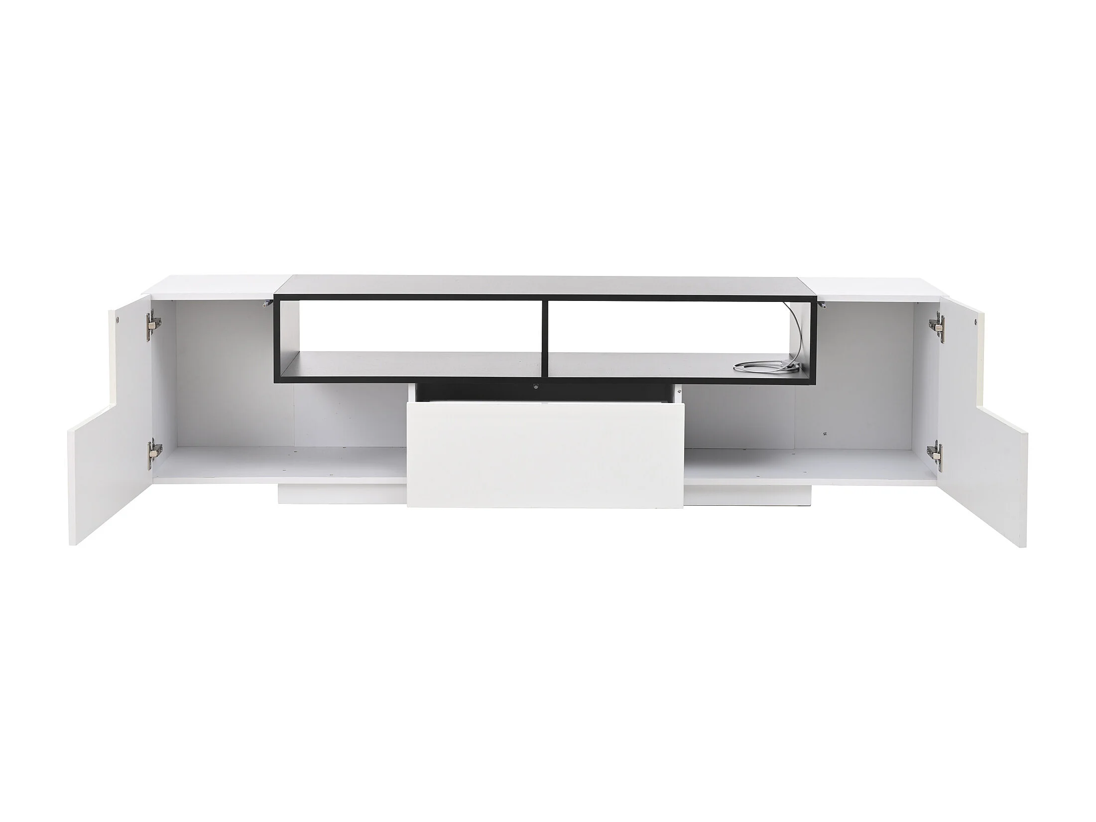 Meuble TV 180x40x48 cm, LED contrôlé par application, 2 rangements en L, 1 tiroir, panneaux de particules blanc