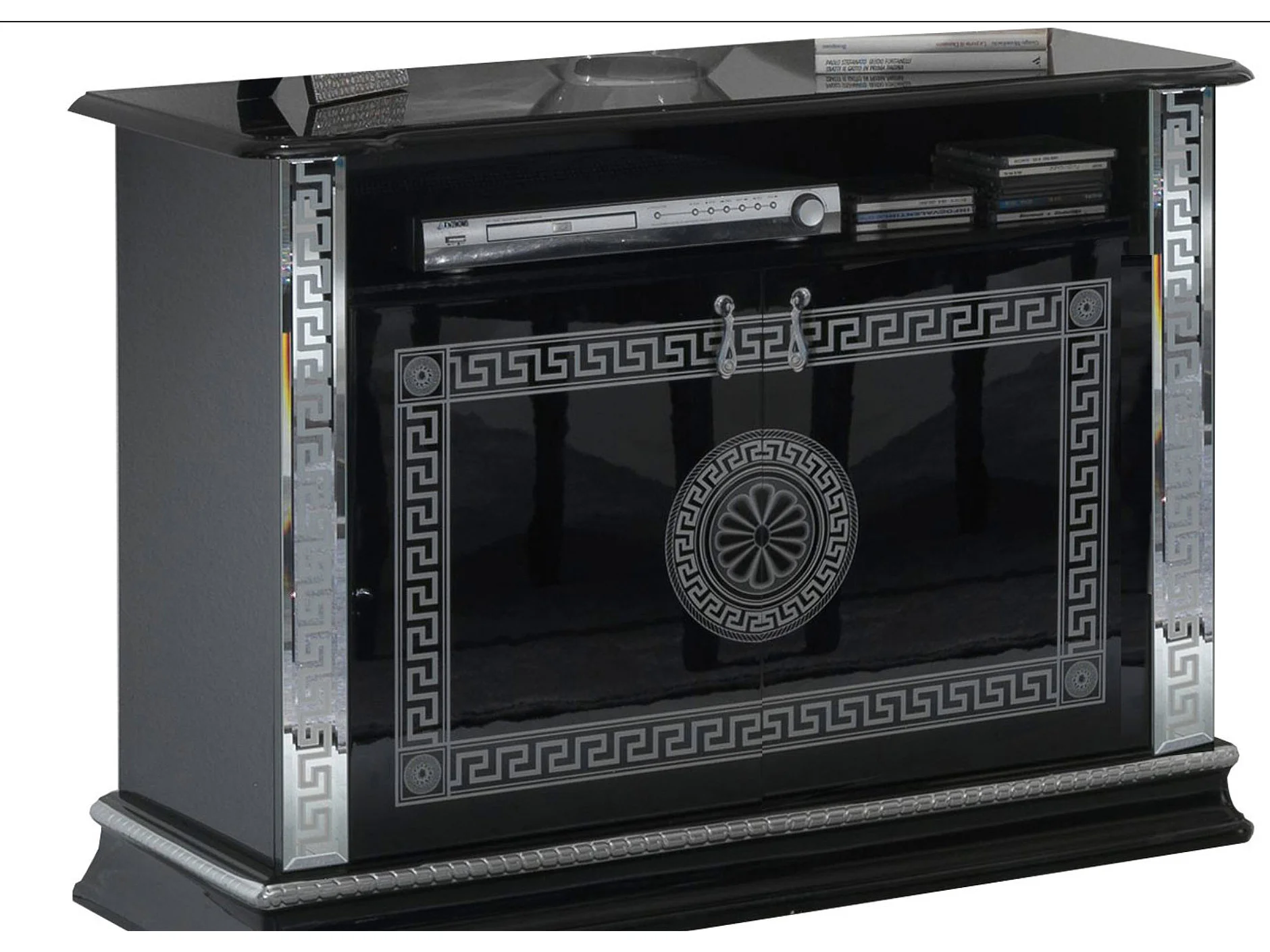 Meuble TV design bois vernis brillant noir et doré Jade 160cm