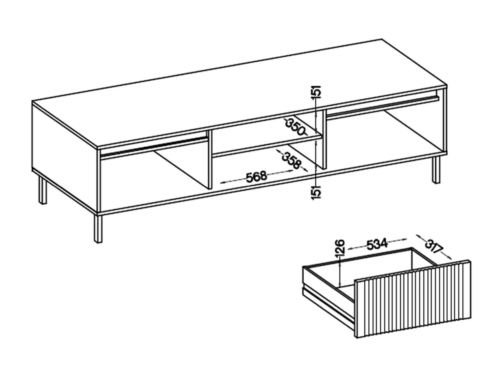 Meuble TV 2 tiroirs - OSAKA - 179 cm -chêne evoke
