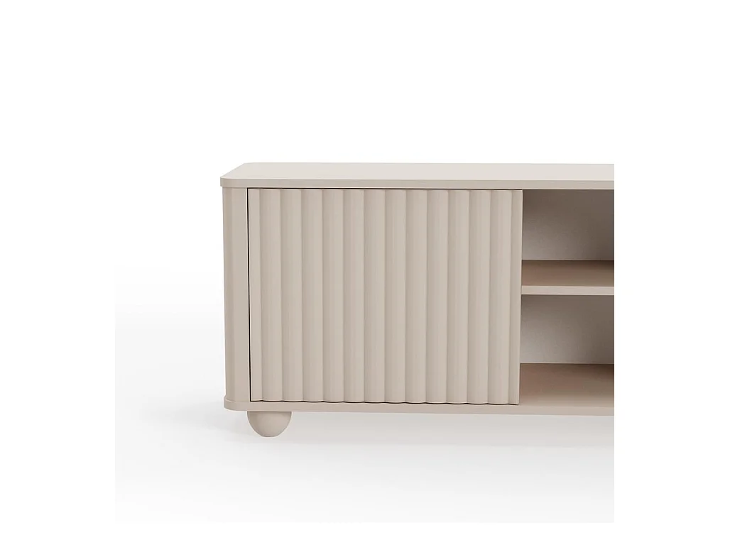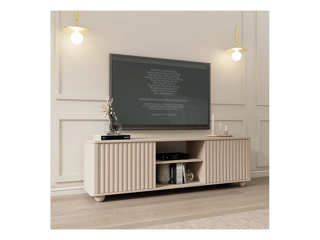Meuble TV Cachemire avec étagères et portes, Design moderne, pieds boule, 160 x 44 x 39 cm