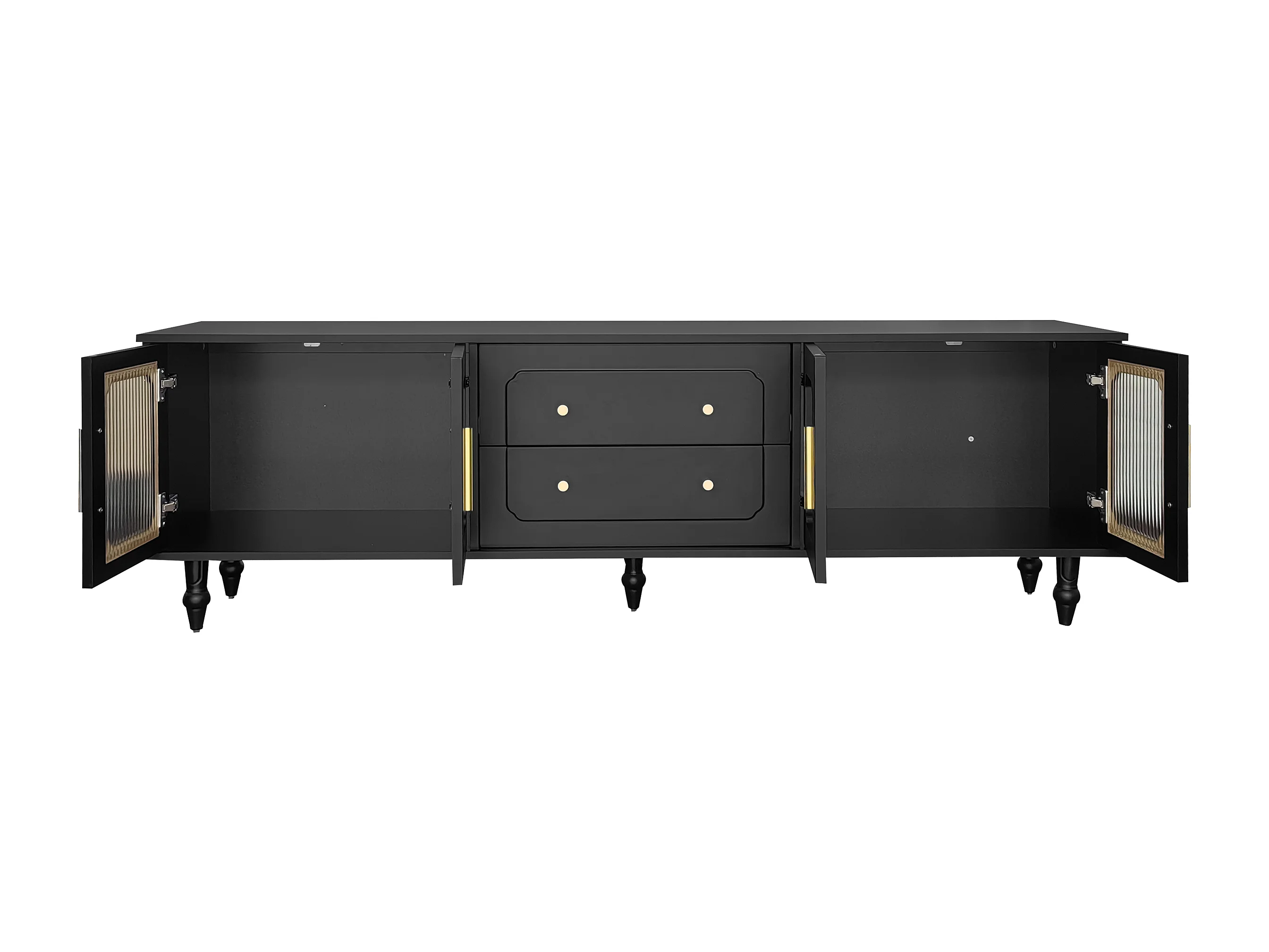Meuble TV avec 4 portes verres et 2 tiroirs - Bois PB - Noir 175x38x55.5cm