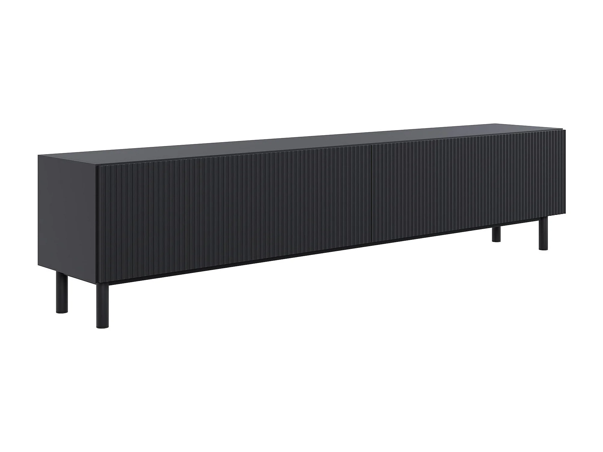 Meuble TV avec façade à rainures – 175 cm – noir – Veldio New