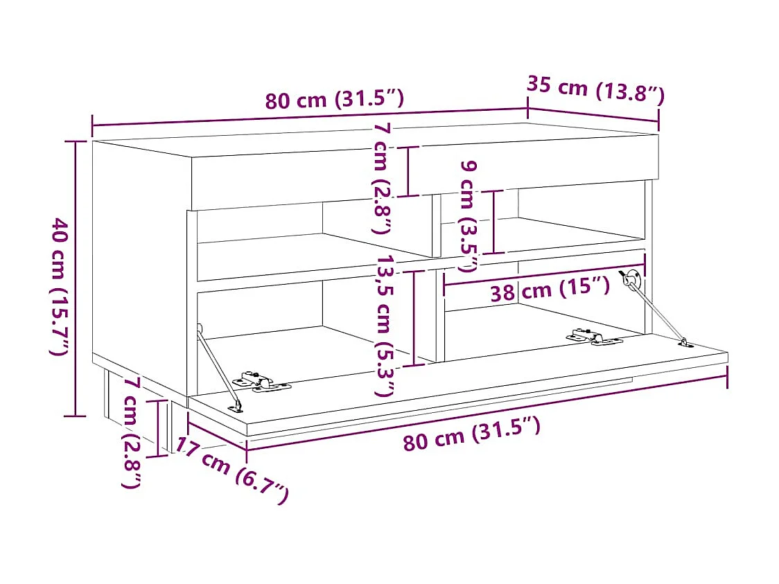 Meuble TV avec lumières LED vieux bois bois d'ingénierie