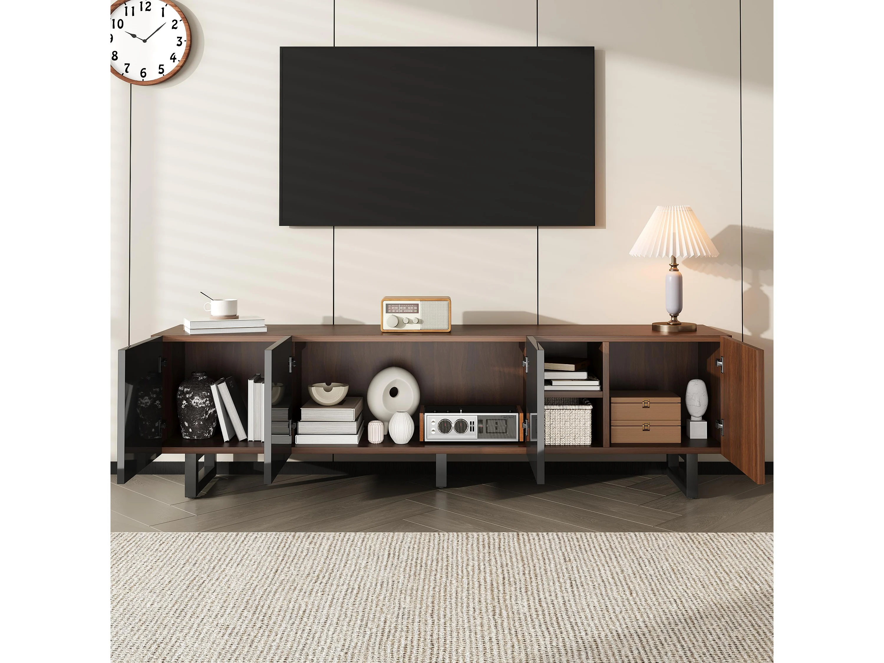 Meuble TV Bois Massif – Portes Ventilées, Rangement, Couleur Naturelle