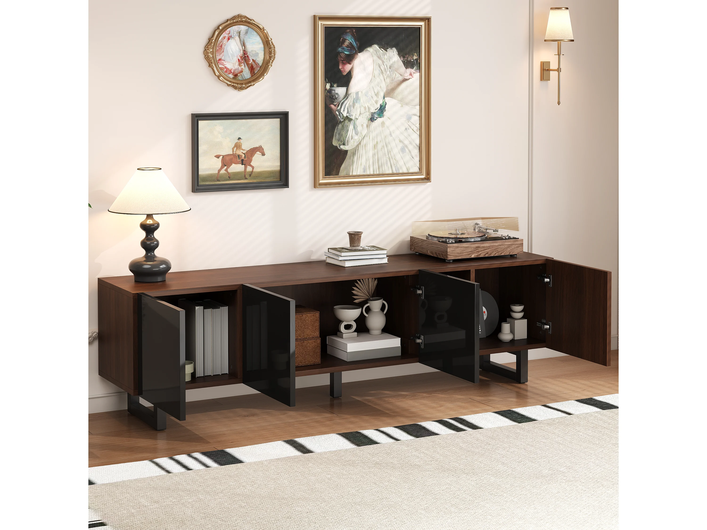 Meuble TV bas à 4 portes - 180 x 38 x 50 cm - design unique - aspect bois vieilli - MDF - noir + naturel cair
