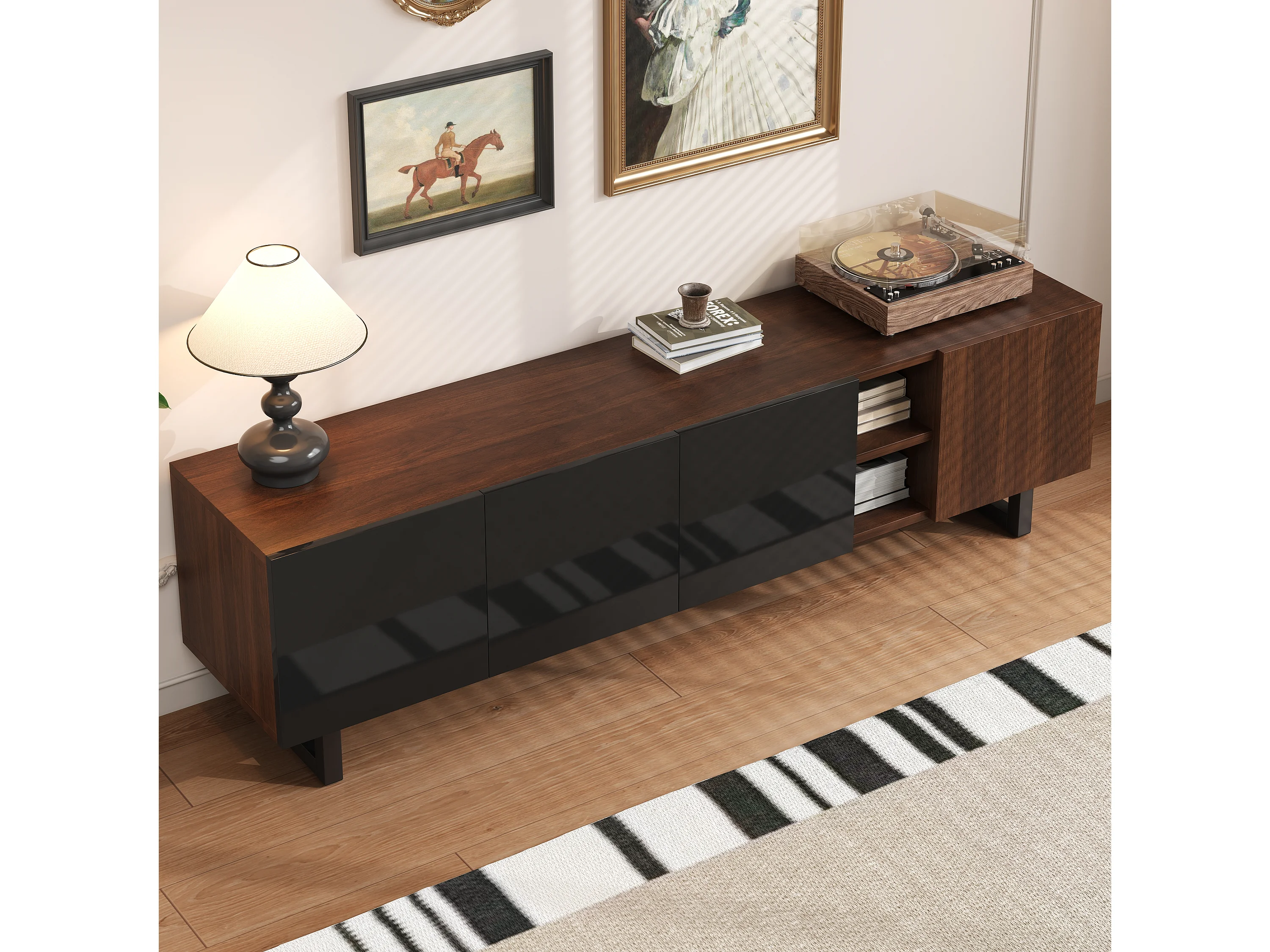 Meuble TV bas à 2 tiroirs et 2 portes - 180 x 38 x 45 cm - design classique - MDF - noir + blanc