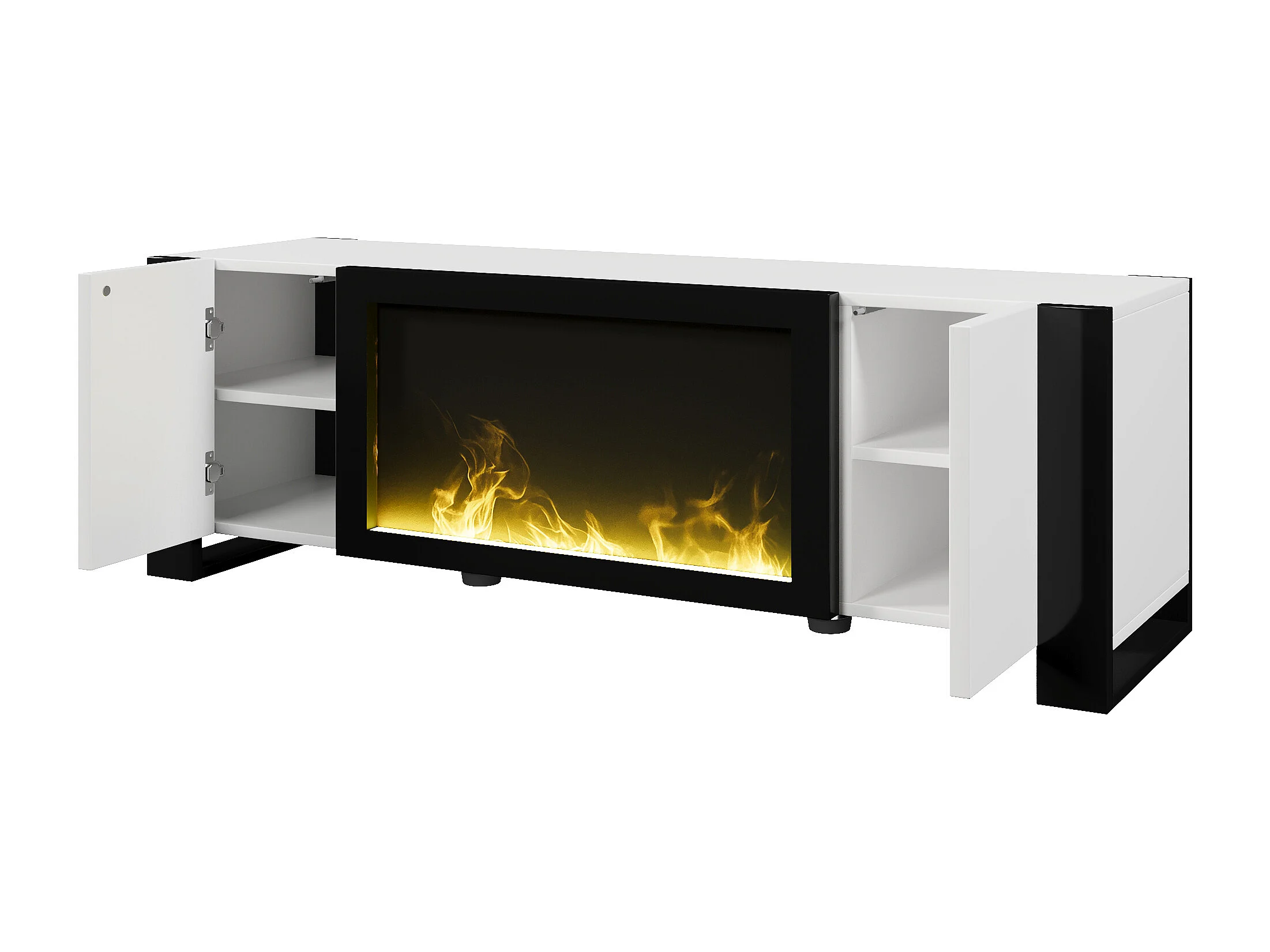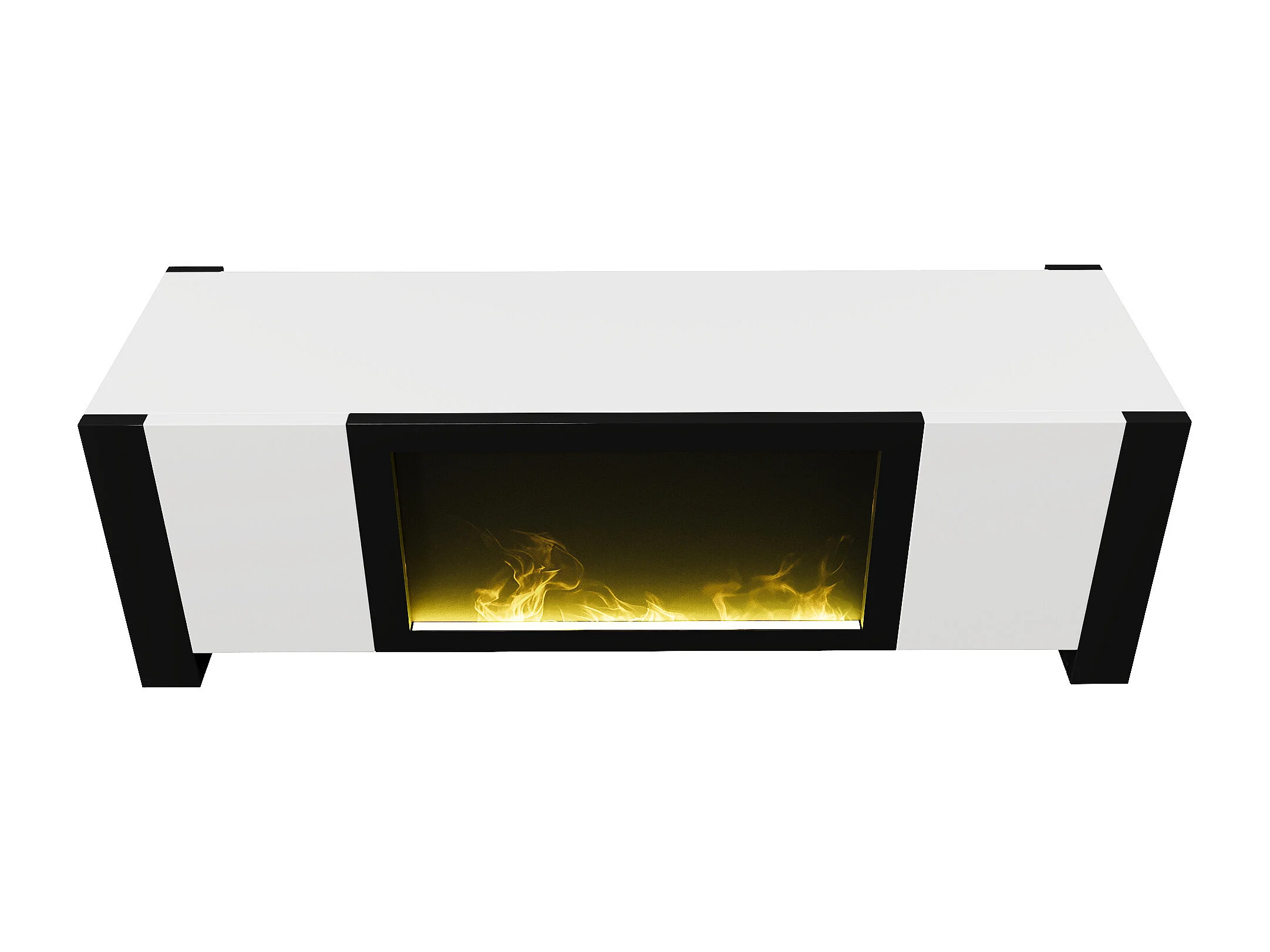 Meuble TV bas avec cheminée électrique , effet flamme , pas de fonction chauffante , Noir+Blanc
