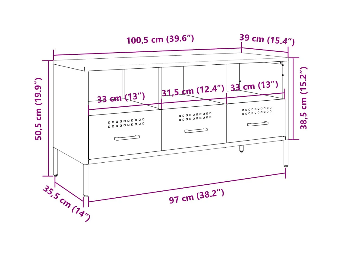 Meuble TV blanc 100,5x39x43,5 cm acier